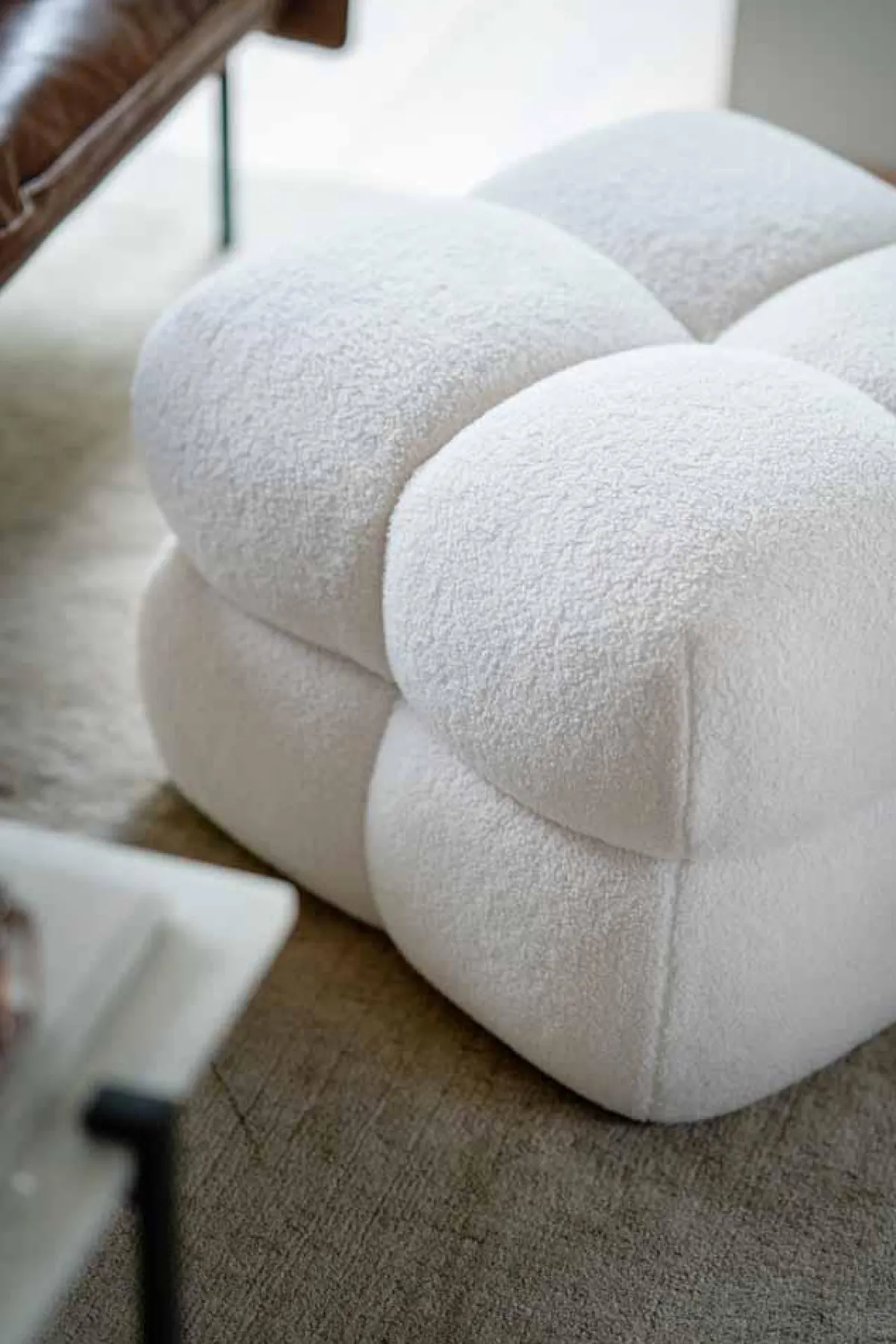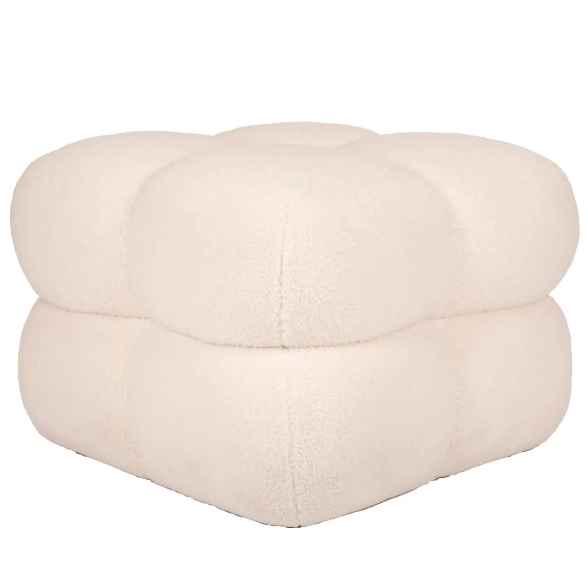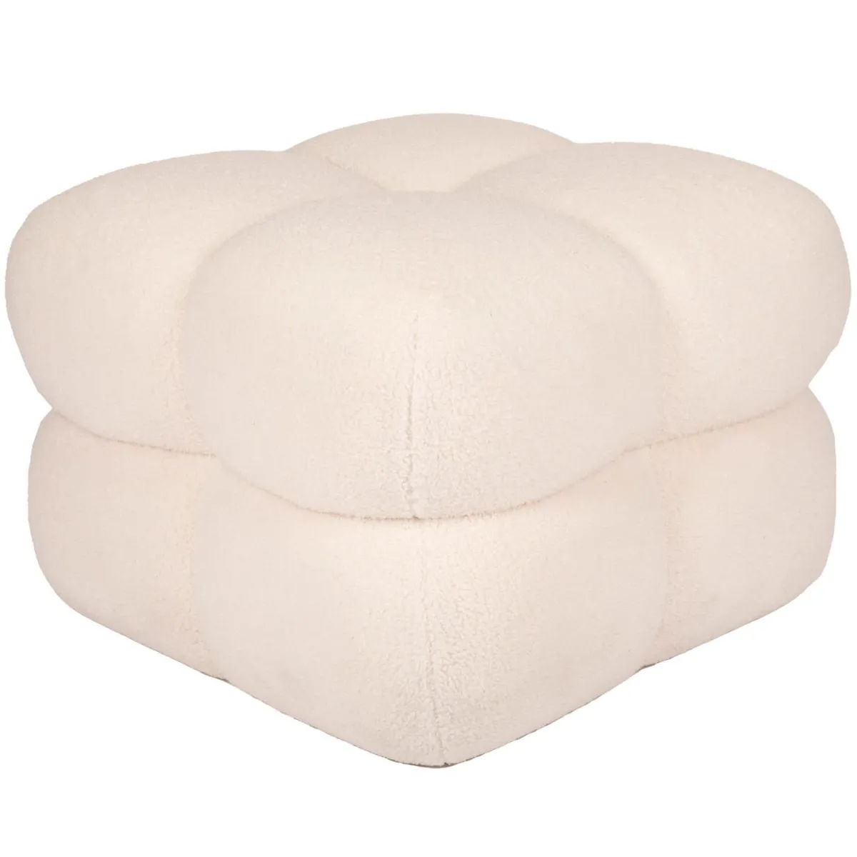 Lekker og trendy puff i hvit teddy materiale. Denne frisker opp en hver stue og gir den et trendy touch. Bruk den som en ekstra sitteplass eller som et lekkert avlastningsbord med et brett eller .