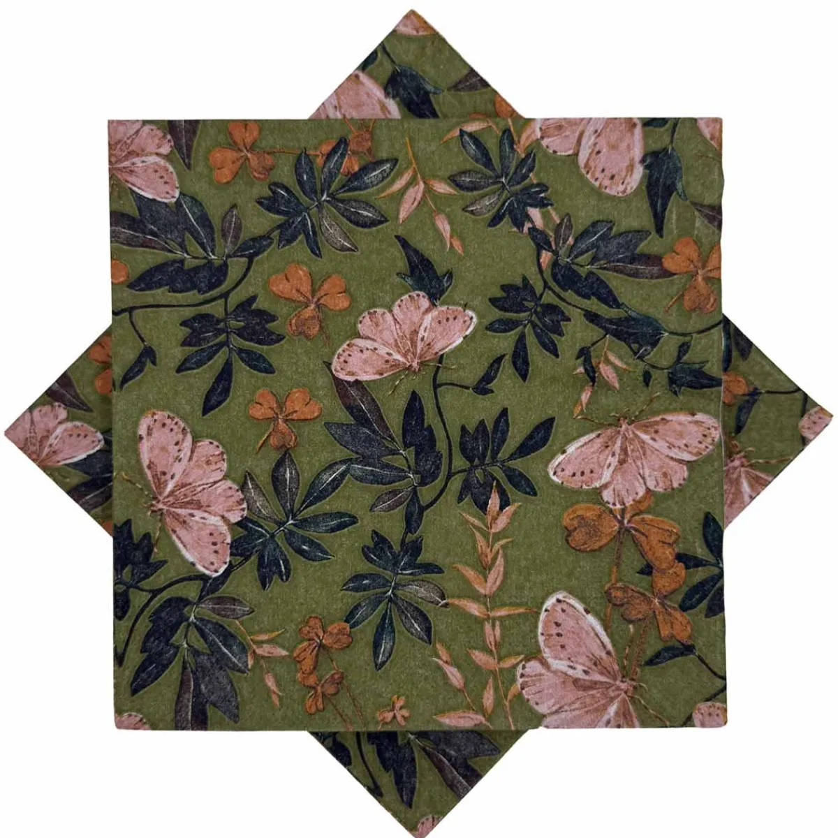 Frisk grønn serviett med lekre sommerfuglmønstre, som tilfører borddekkingen en livlig følelse. Sjekk ut alle serviettene våre