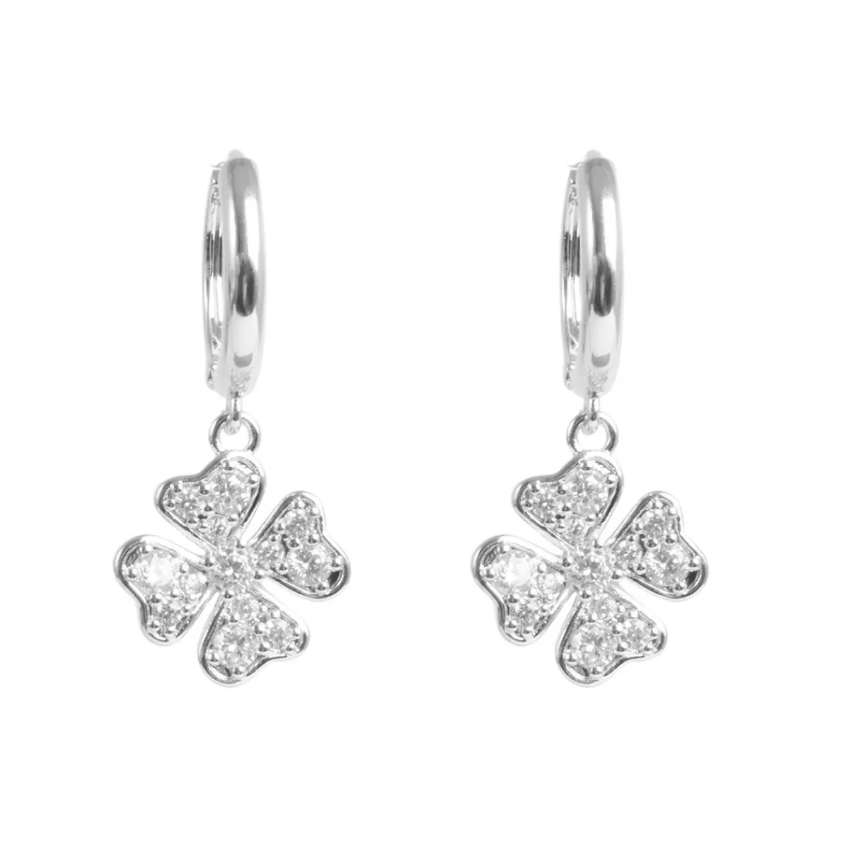 Elegante små øreringer i sølv med et delikat firkløveranheng!