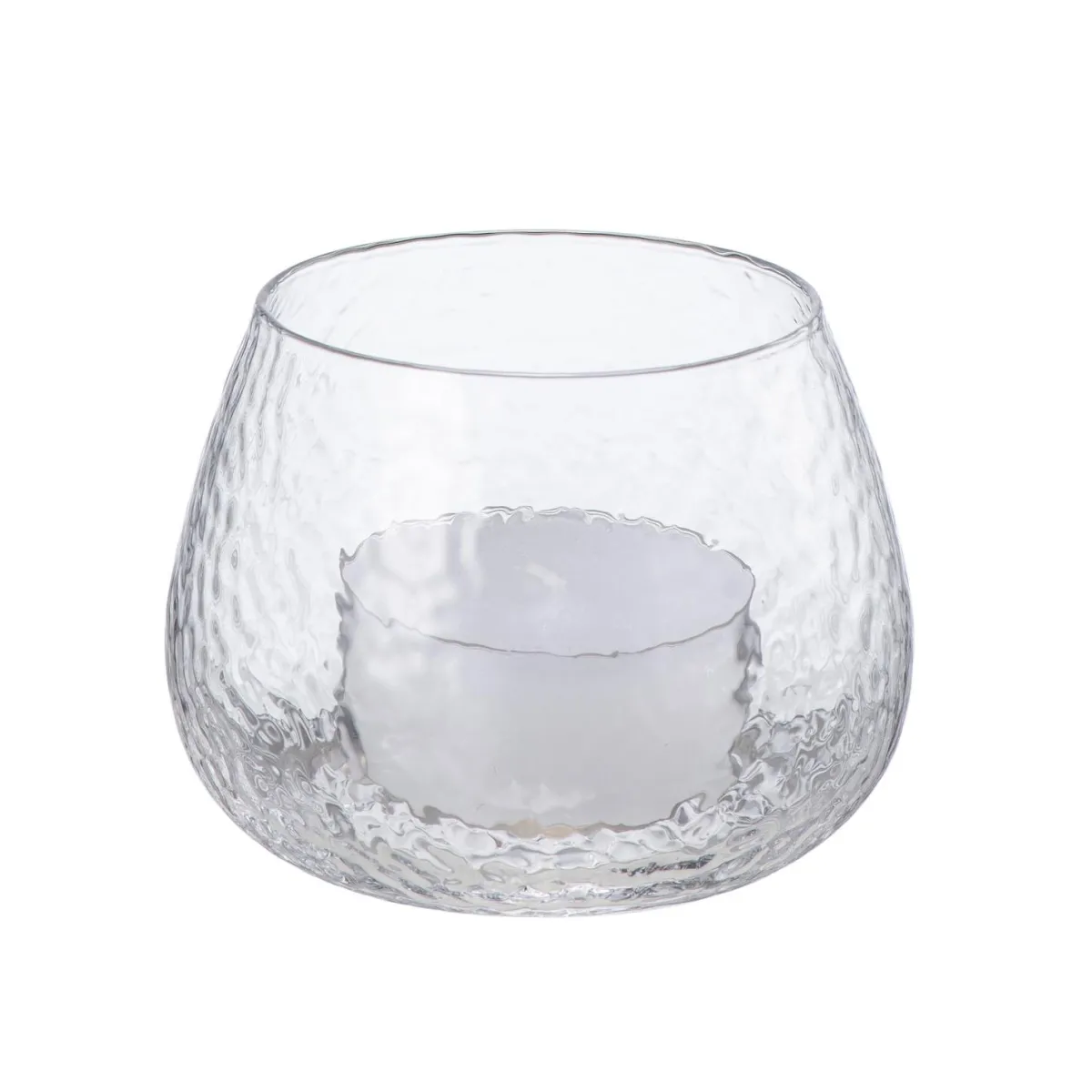 Nydelig telysglass i blankt glass som leker med lyset fra telyset. Pynt opp på lysfatet eller på stuebordet.