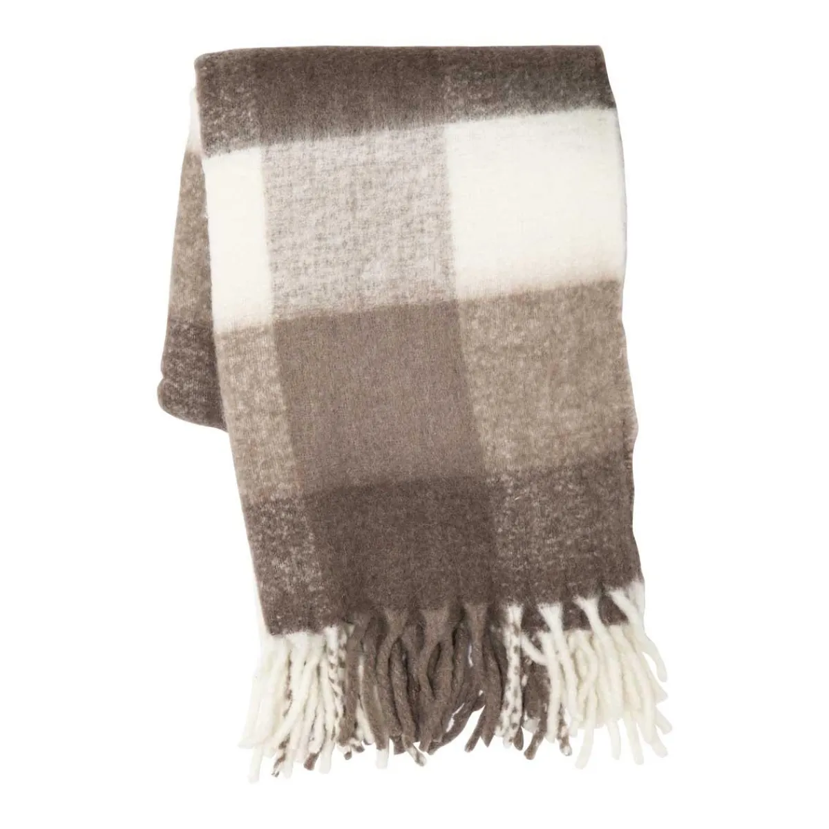 Nydelig og deilig pledd i ullmix. Pleddet har lune toner av brunt, beige og krem som gjør det lett å kombinere med andre tekstiler i sofaen eller på sengen. Perfekt for rolige kvelder, og akkurat stort nok til å dele – hvis du vil. Prøv det sammen med i rolig lin, eller miks inn litt fløyel for mer kontrast og kos.