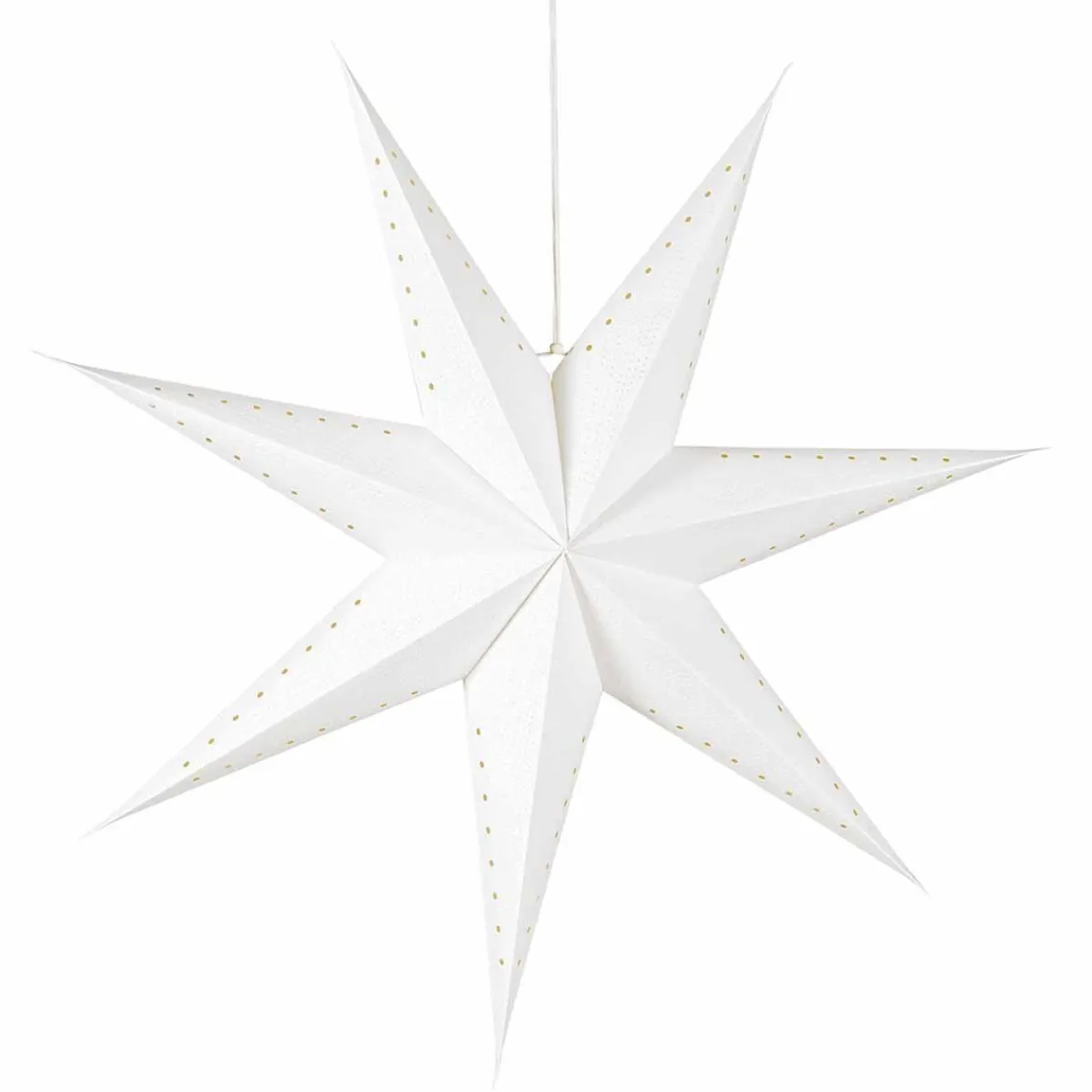 Stor adventstjerne i hvitt som gir et rolig og harmonisk lys. Skaper en lun og klassisk julestemning i hjemmet. Finnes også i og i !