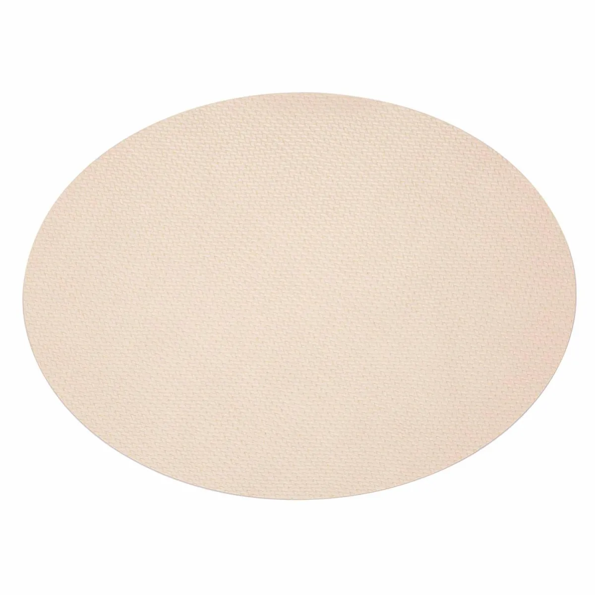 Oval dekkebrikke med en dus kremtone som passer like godt til søndagsfrokost som til middag med lys og . Den teksturerte overflaten gir et mykt uttrykk og beskytter samtidig bordet.