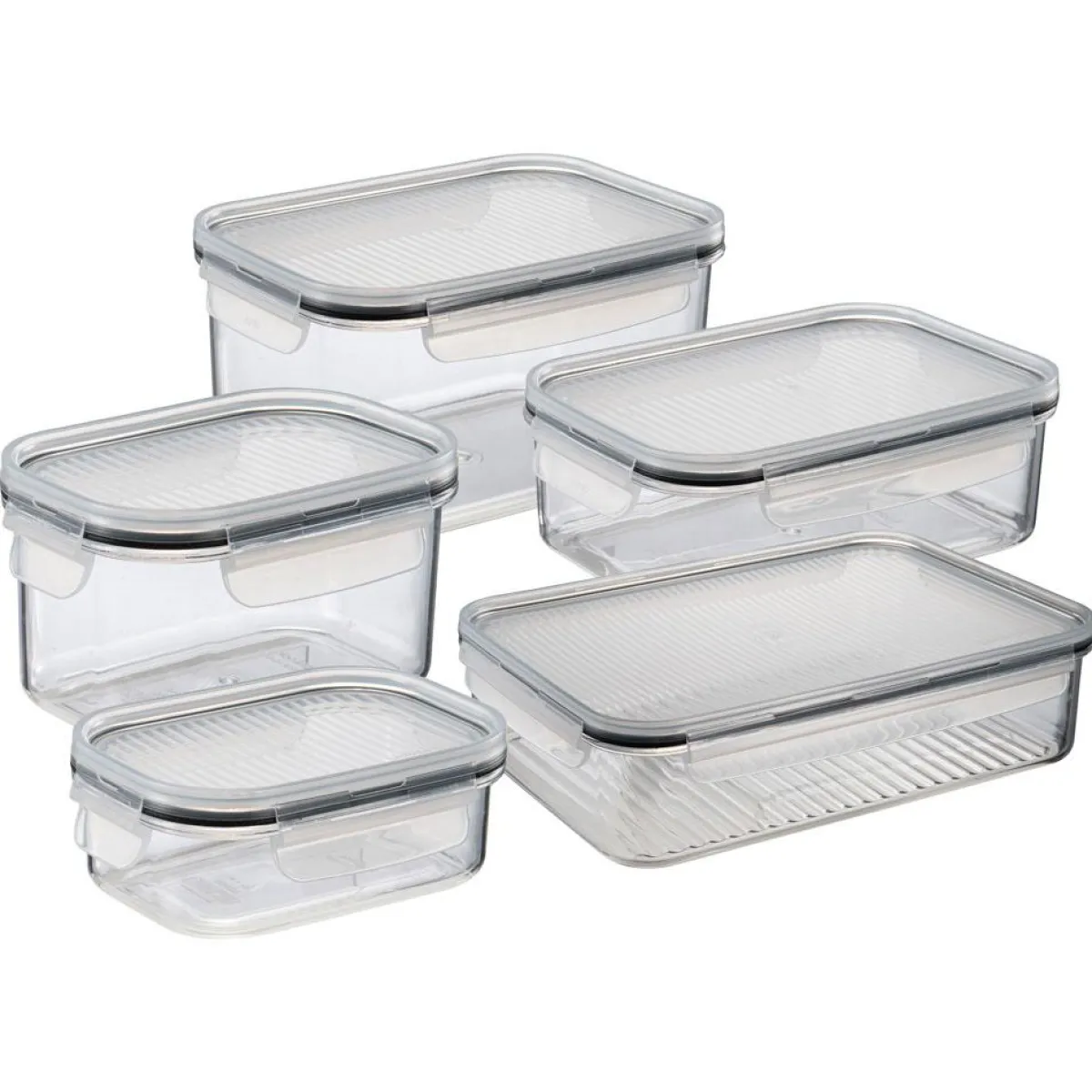 Oppbevar maten trygt og friskt med vårt nydelige Locknlock oppbevaringsbokssett fra Modern House! Dette sjarmerende settet består av 5 lufttette og gjennomsiktige bokser i ulike størrelser, perfekte for å holde orden i skapet, kjøleskapet og skuffene dine. Laget av holdbar Tritan® plast, sikrer disse boksene både lang levetid og klarhet. Med lufttette lokk som sørger for å bevare matens friskhet, er de både praktiske og funksjonelle. Og ikke minst, de er enkle å rengjøre i oppvaskmaskinen og tåler både mikrobølgeovn og fryser. Så nå kan du glede deg over frisk mat og organisering!