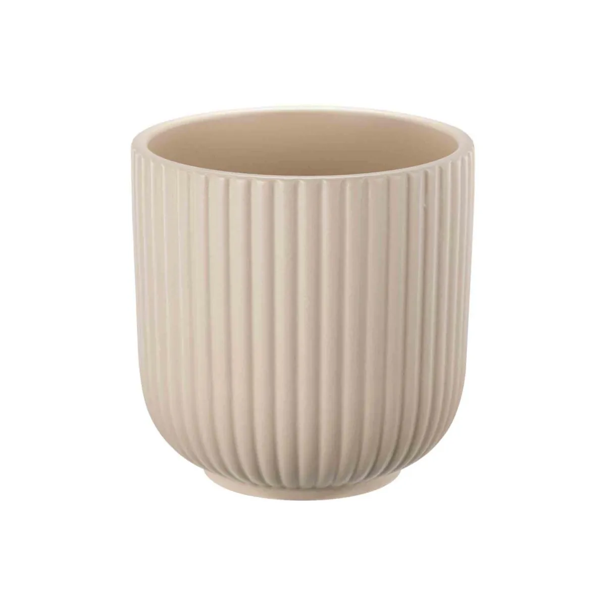 Denne elegante blomsterpotten har et tidløst og minimalistisk design med vertikale riller som gir et moderne uttrykk. Den er laget av keramikk i en varm, beige fargetone som passer perfekt inn i både klassiske og moderne interiører.