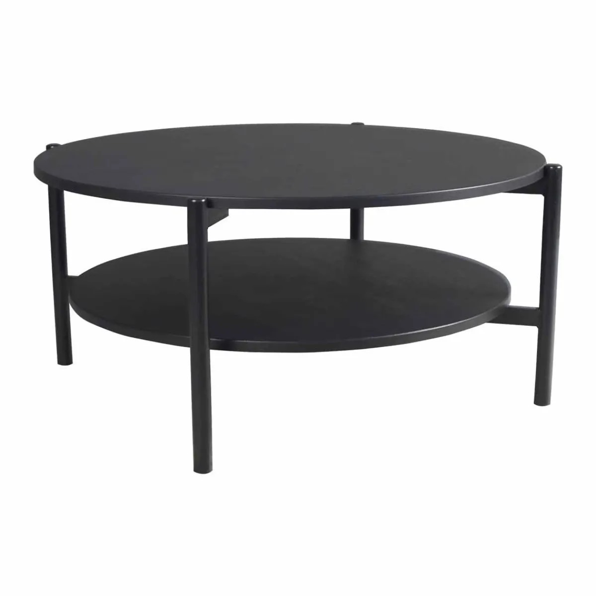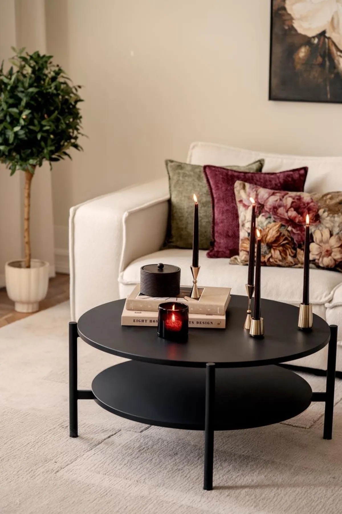Rundt sofabord med to bordplater i sort finish – perfekt for deg som liker orden og en ryddig stue. Øverste plate gir god plass til kaffekoppen, mens den nederste kan romme alt fra fjernkontroller til bøker og magasiner. Formen gjør det enkelt å samle møbler rundt, enten det er to eller fire sitteplasser. Stilrent og praktisk, uten at det føles kaldt.