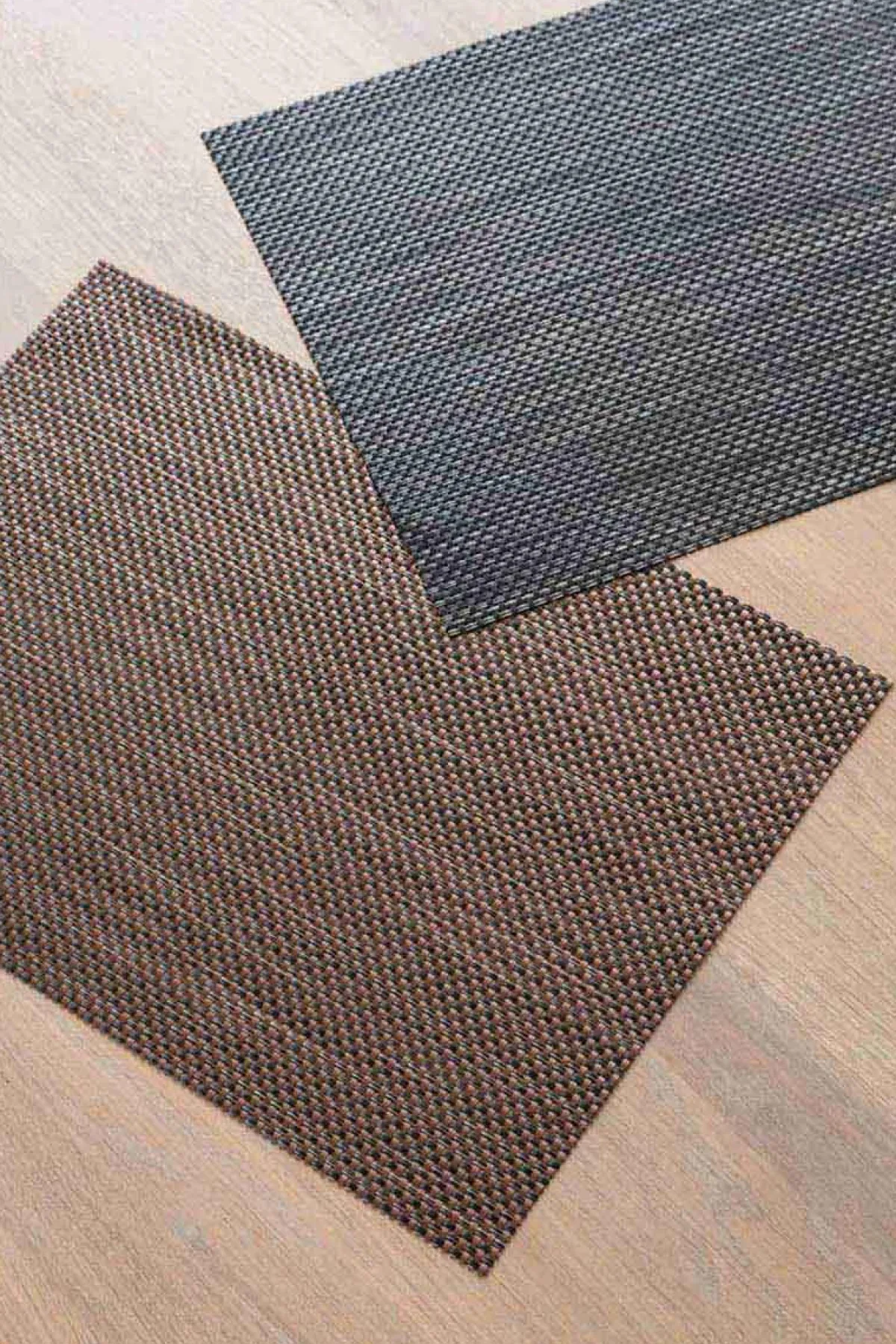 Mørk dekkebrikke med vevd struktur som gir bordet et ryddig uttrykk og beskytter underlaget mot søl og riper. Enkel å tørke av og passer like fint til hverdag som til helgekos.