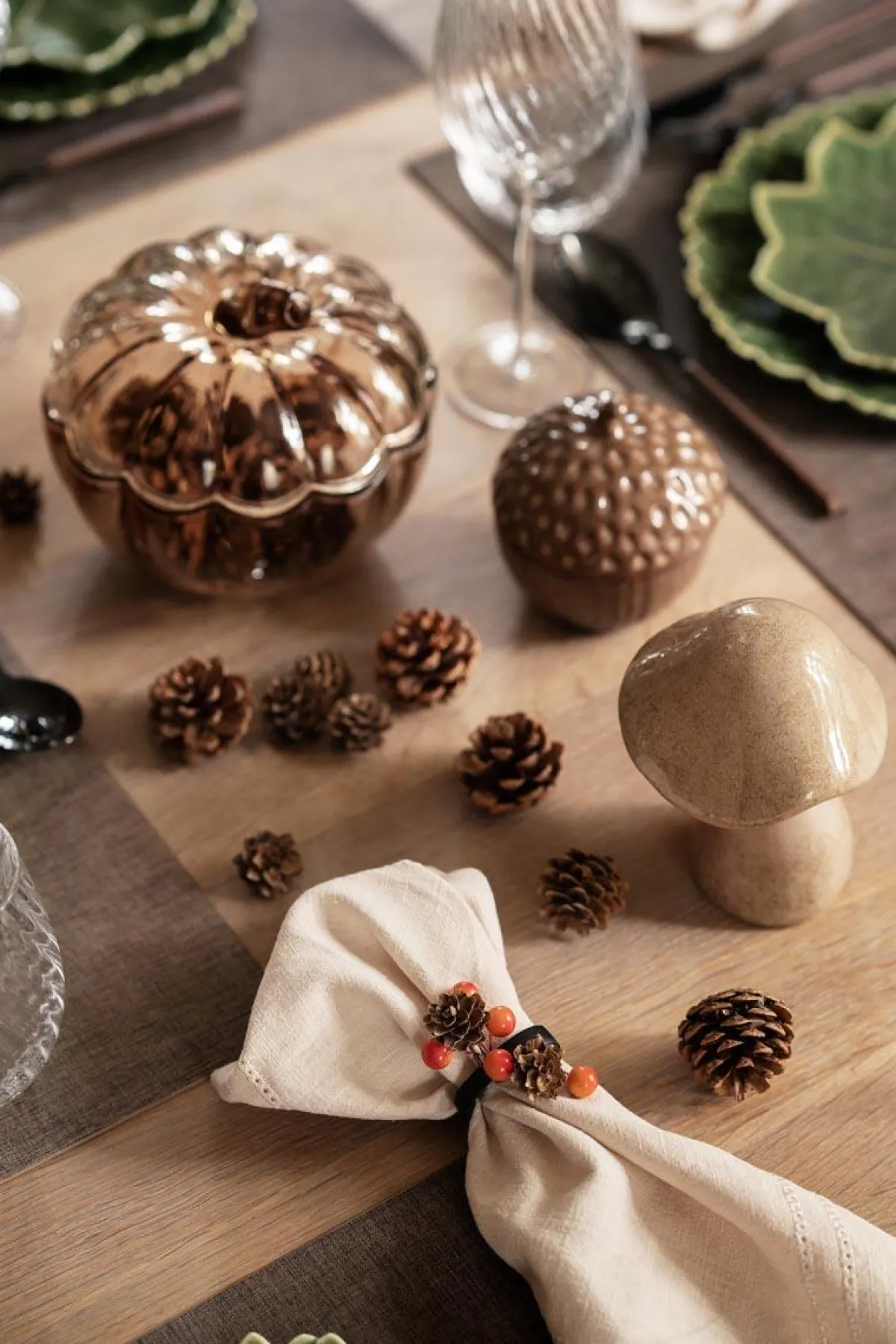 Dekorblanding med kongler og små oransje bær gir raskt en lun stemning i hjemmet. Perfekt i en glasskål, på et fat med lys, eller som pynt på servietten. Fint å bruke gjennom både høst og vinter.