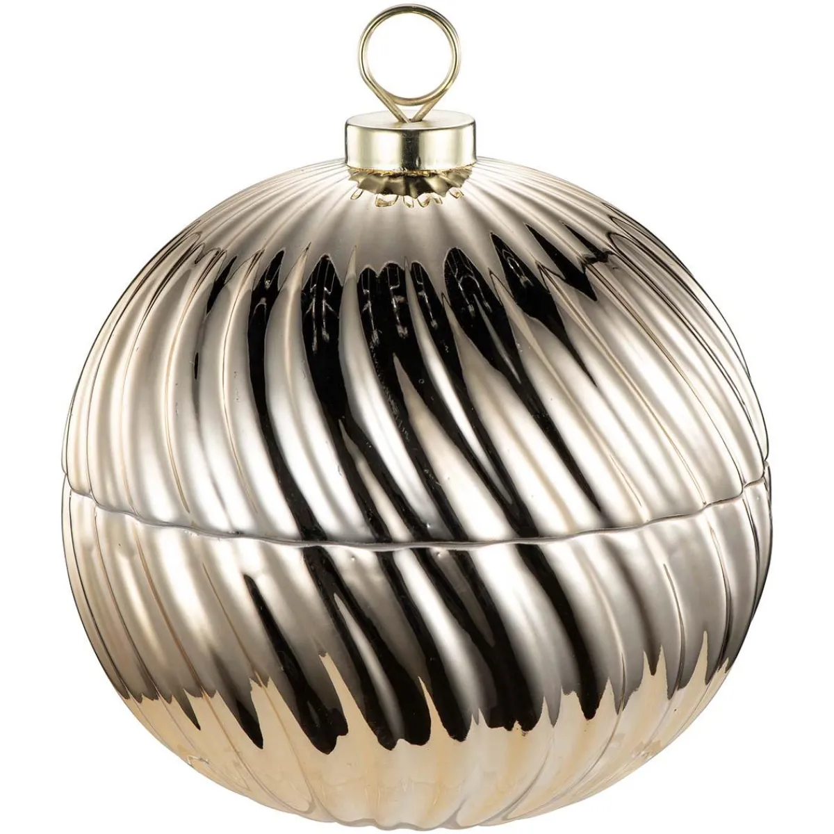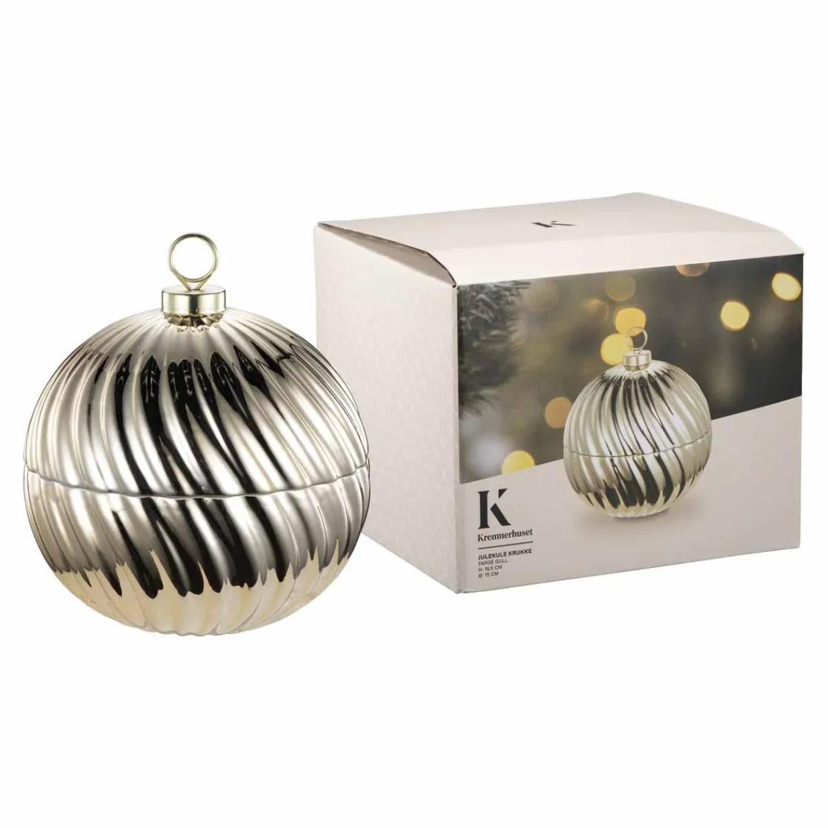 Elegant krukke formet som en julekule i gull. Perfekt til smågodt eller dekor, og et vakkert blikkfang som gir glød til julepynten. Sjekk ut alle våre julevarer