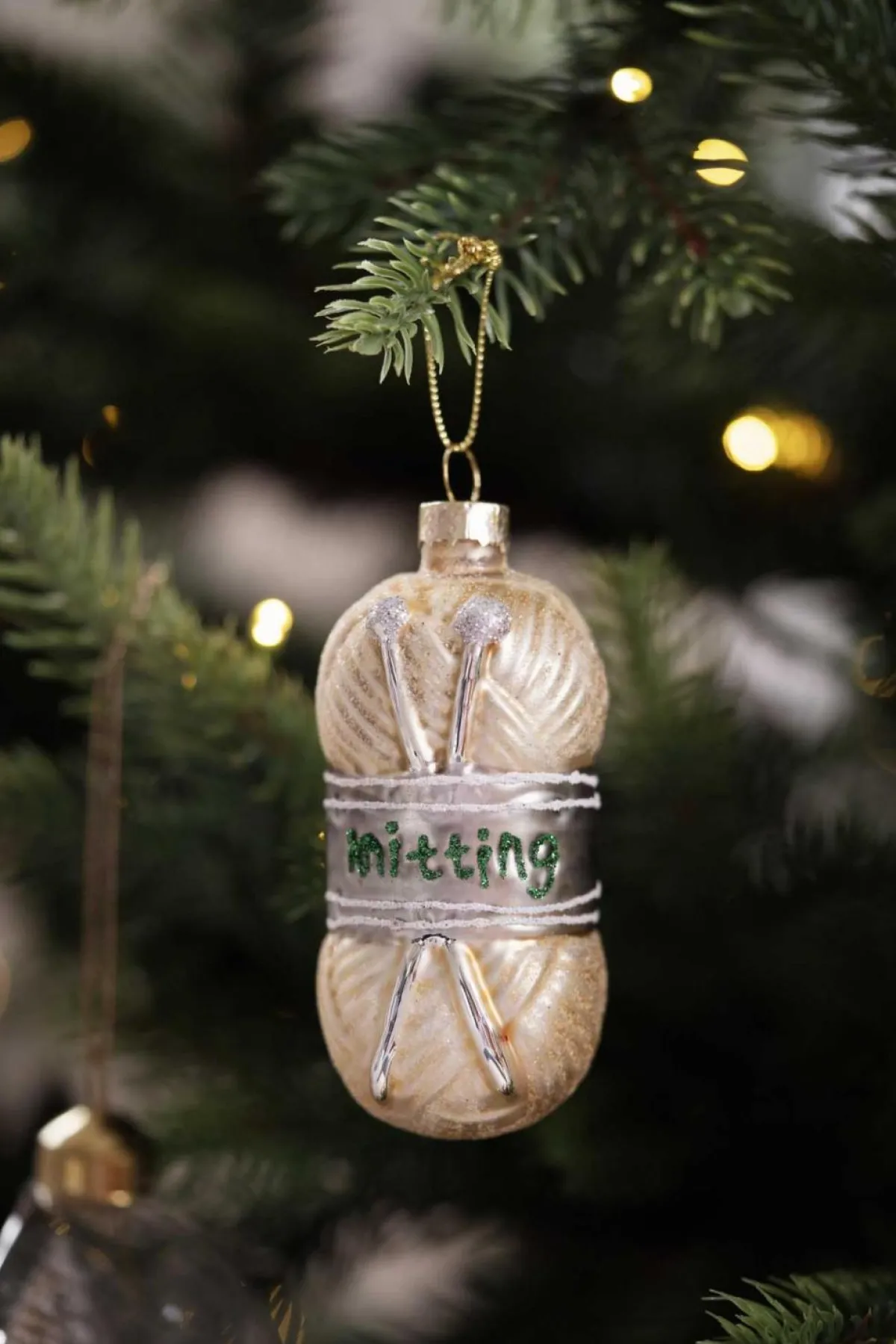 Morsom julekule formet som et garnnøste. Perfekt å gi bort som en oppmerksomhet til den i livet ditt som elsker å strikke. Eller så er dette din sjanse til å gjøre ditt eget juletre personlig.