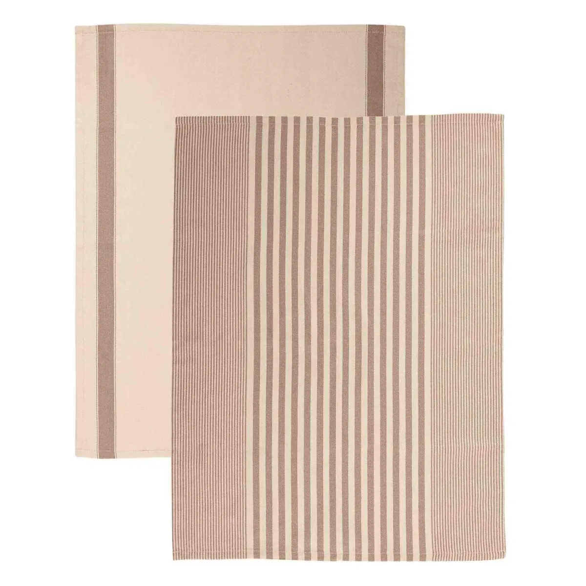 Forny kjøkkenet med disse sjarmerende kjøkkenhåndklærne i harmoniske jordtoner. Perfekte til å tørke opp, dekke til nystekte bakverk eller som et dekorativt innslag. To ulike mønstre gir variasjon – en med klassiske striper og en ensfarget med stilige detaljer. Kombiner gjerne med matchende kjøkkenprodukter, som dekkebrikker og grytekluter, for et gjennomført uttrykk.