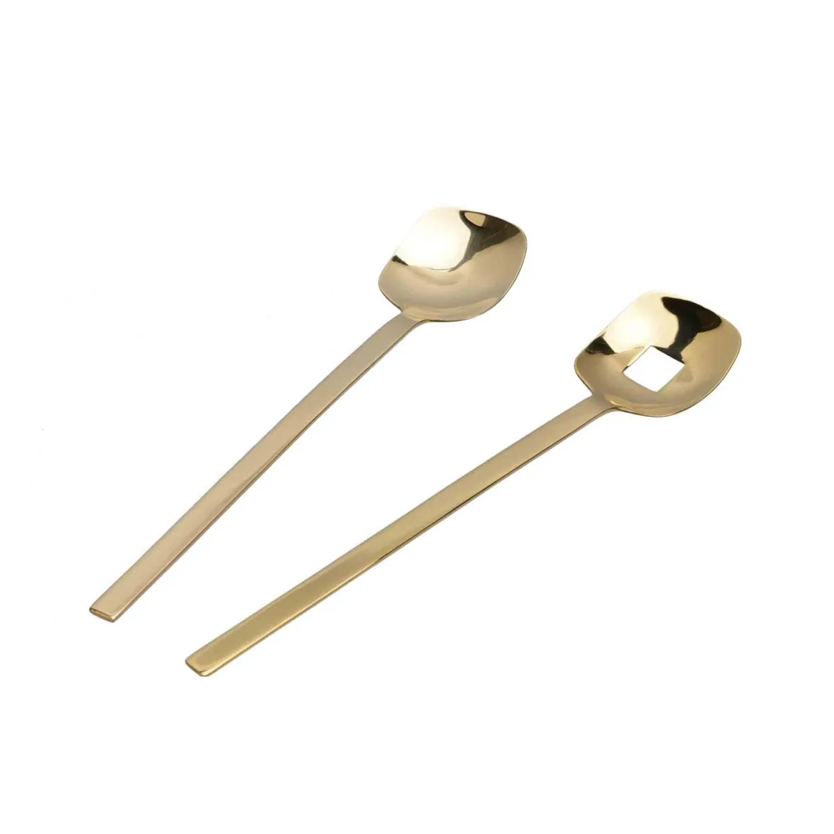 Modern House «Sana» salatbestikk i gull tilfører et moderne preg til ditt spisebord. Med sitt stilrene design og elegante gullfinish, gir dette salatbestikket en sofistikert touch til enhver måltid.