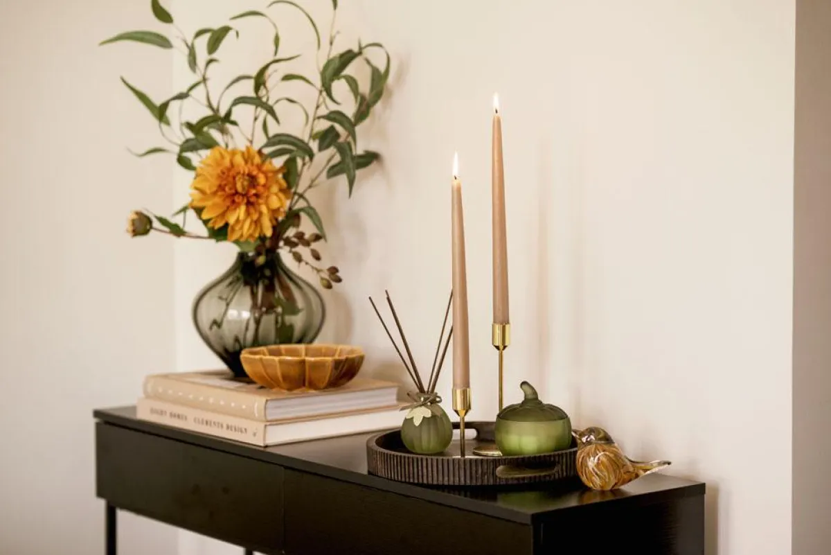 Rillene på denne dekorskålen gjør den perfekt til pynt på sofabordet eller i en hylle. Fargen og den blanke glasuren komplimenterer høstens farger. La den skinne for seg selv eller bruk den til oppbevaring av ting som nøkler eller andre småting.