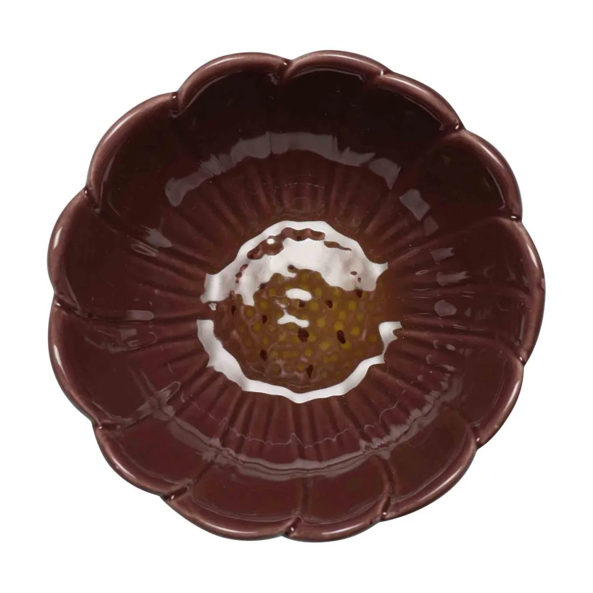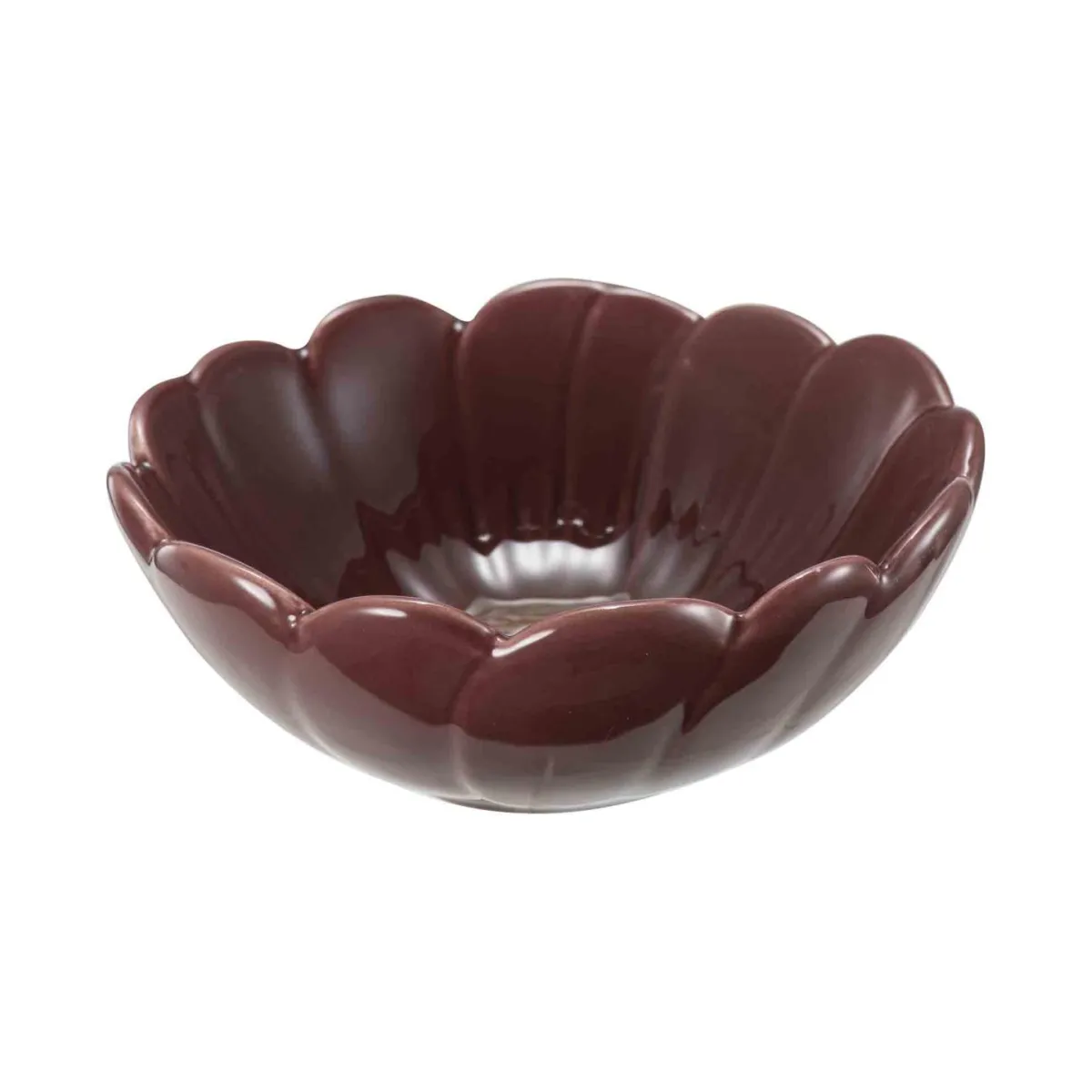 En nydelig liten skål i burgunder, formet som en blomst, gir et vakkert preg til enhver borddekking. Den er ideell til sukker, krydder eller oljer, og kan også brukes som en liten dekorasjon i seg selv. Skålen kommer i , så du kan velge å sette dem sammen som et sett eller bruke hver enkelt for seg. Dette gjør det lett å variere etter anledning og stemning.