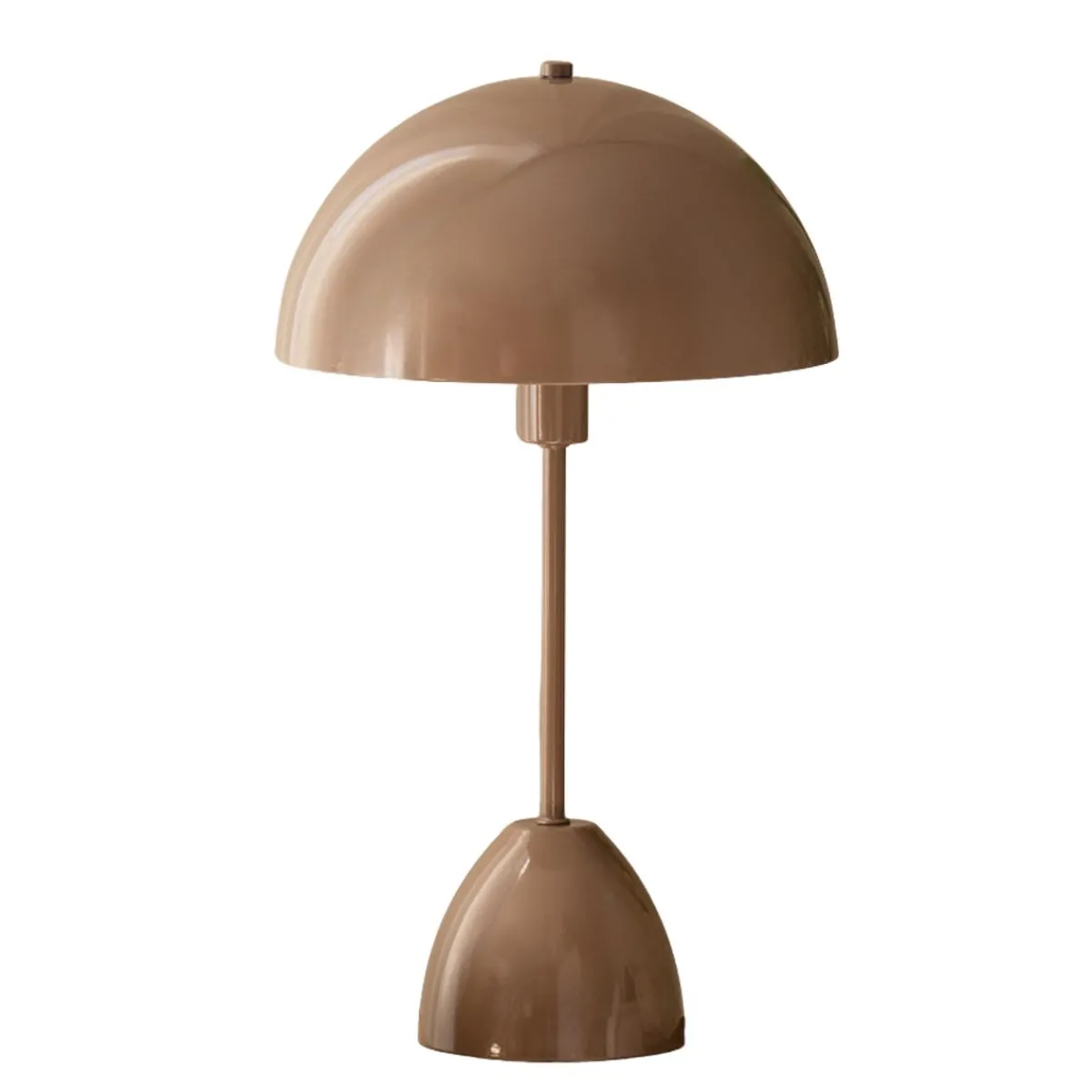 Favoritten har fått en liten høstoppdatering og står nå i en mørk beige nyanse. Den avrundede formen og blanke overflaten gir et vennlig uttrykk, og lampen passer like godt på nattbordet som på en kommode i gangen.