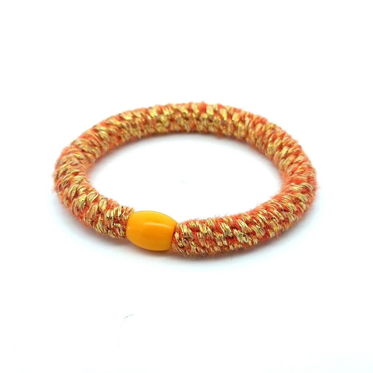 Herlig hårstrikk i flettet mønster i friske farger oransje og gull. Hårstrikkene fra A&C er i god kvalitet som varer lenge. .