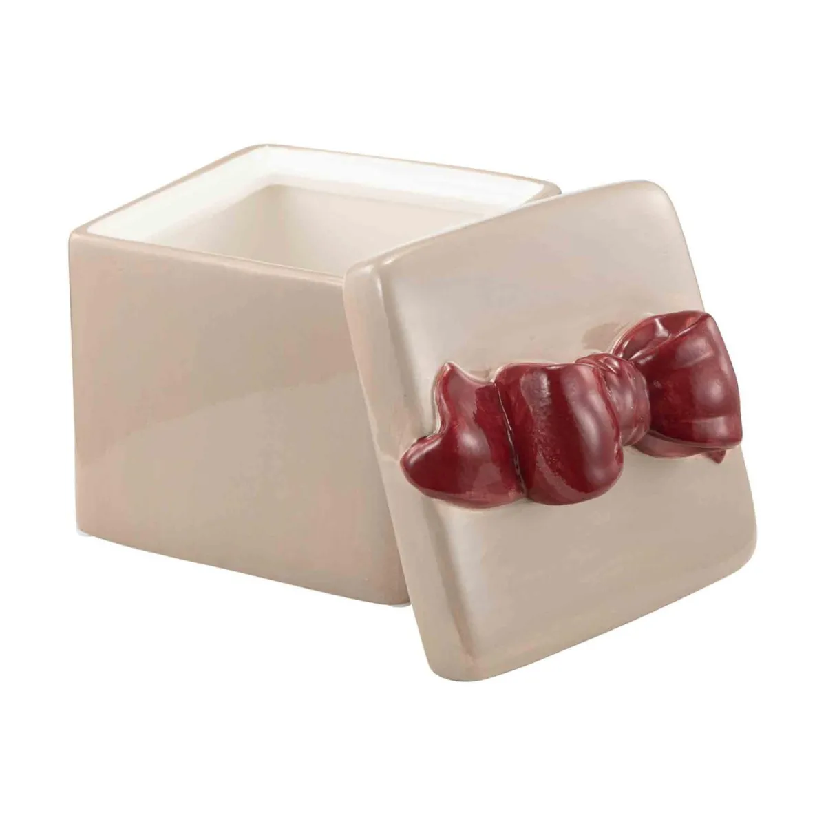 Legg til en touch av festlighet med vår julekrukke formet som en gavepakke med sløyfe på toppen. Denne sjarmerende krukken i en delikat beige farge er både funksjonell og dekorativ, perfekt for å oppbevare små skatter eller søtsaker i julen.
