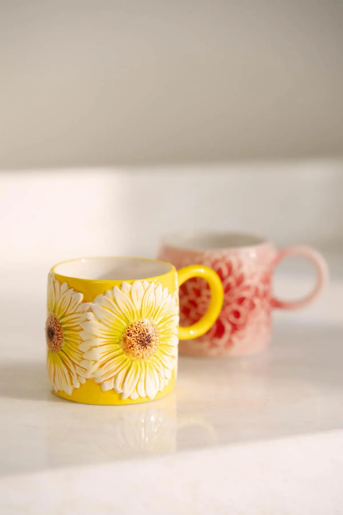 Et krus som sprer solskinn til morgenstunden. Blomstermotivet bringer varme og energi til kjøkkenbordet og gjør enhver kaffepause litt lysere. Perfekt som gave eller til eget bruk, og enda finere i selskap med eller en e som komplementerer designet.