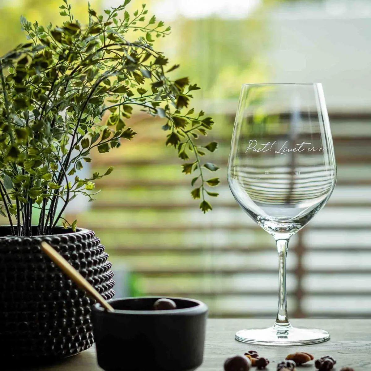 Nyt vin med en inspirerende touch med rødvinsglasset fra Lykketegning med teksten «Pust, livet er nå.» Dette elegante glasset på 62 cl minner deg om å sette pris på øyeblikkene, enten det er ved en spesialmiddag eller en hverdagsfeiring. Perfekt for å gjøre hver skål ekstra minneverdig.