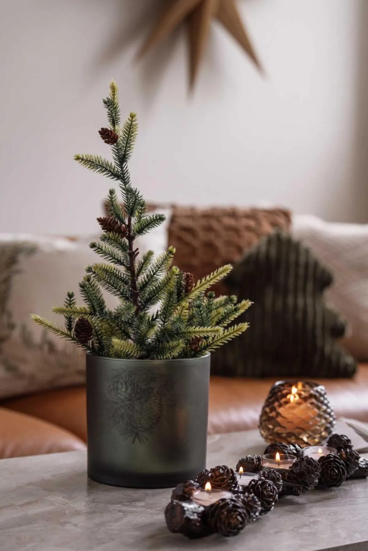 Skap magi i hjemmet ditt med vår store lyslykt Granskatt. Denne imponerende lyslykten har en skoggrønn farge og et gullbelegg på innsiden, som sprer en varm og innbydende glød når den brenner. Det elegante mønsteret av granbar og kongler på utsiden gir en følelse av skogens ro.