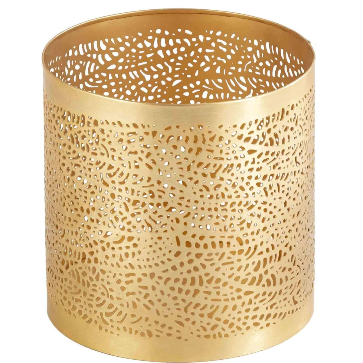 Lekker telysholder i børstet gull med mønster som er nydelig når lyset brenner!