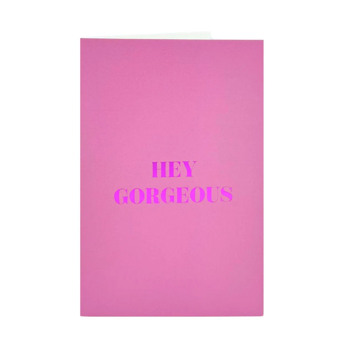 Dette kortet i livlig rosa har teksten «Hey Gorgeous» trykket i lilla, som gir det et lekent og oppmuntrende uttrykk. Perfekt til å gi til en venn, kjæreste eller en som trenger litt ekstra oppmuntring. Kortet har blank innside, så du kan skrive din egen, personlige melding.