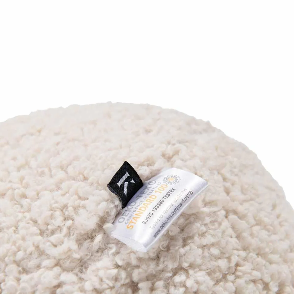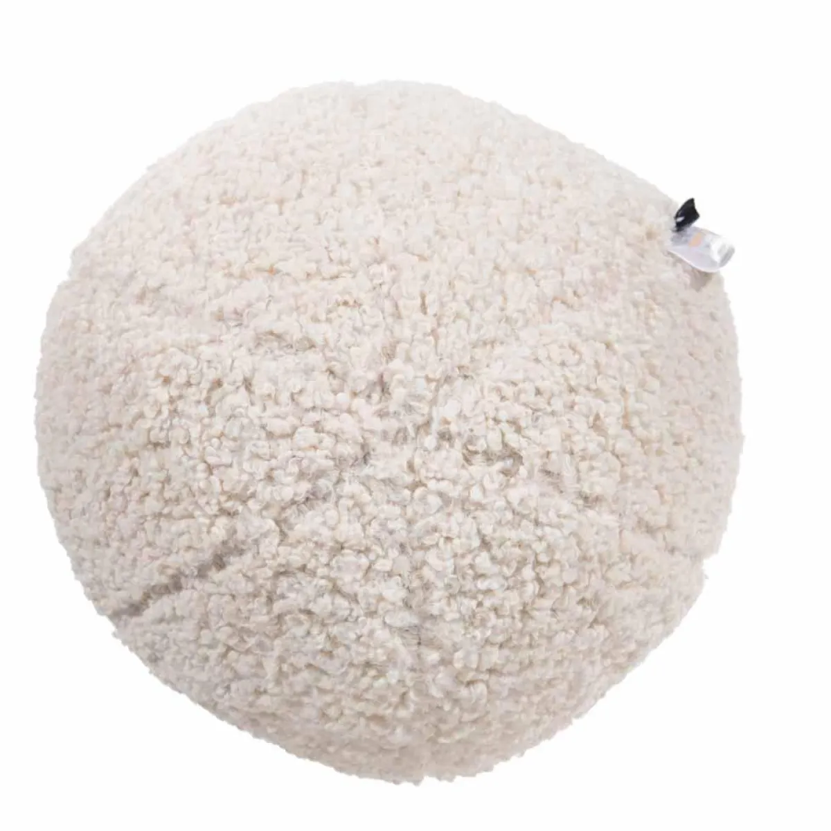 Rund, hvit og trendy teddypute. Miks puten med andre farger og fasonger.
