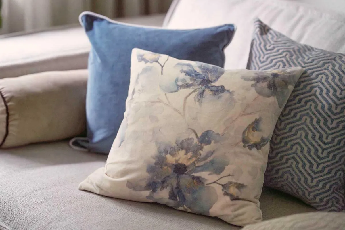 Putetrekket med blomster i delikate blåtoner bringer en følelse av naturens ro inn i hjemmet. Det passer perfekt i sofaen, på sengen eller i favorittstolen, og kombineres lett med andre tekstiler for et harmonisk uttrykk. Trekkets myke stoff og kunstneriske mønster gir rommet en lun stemning. Match med ensfargede puter i blått eller beige for en gjennomført stil.