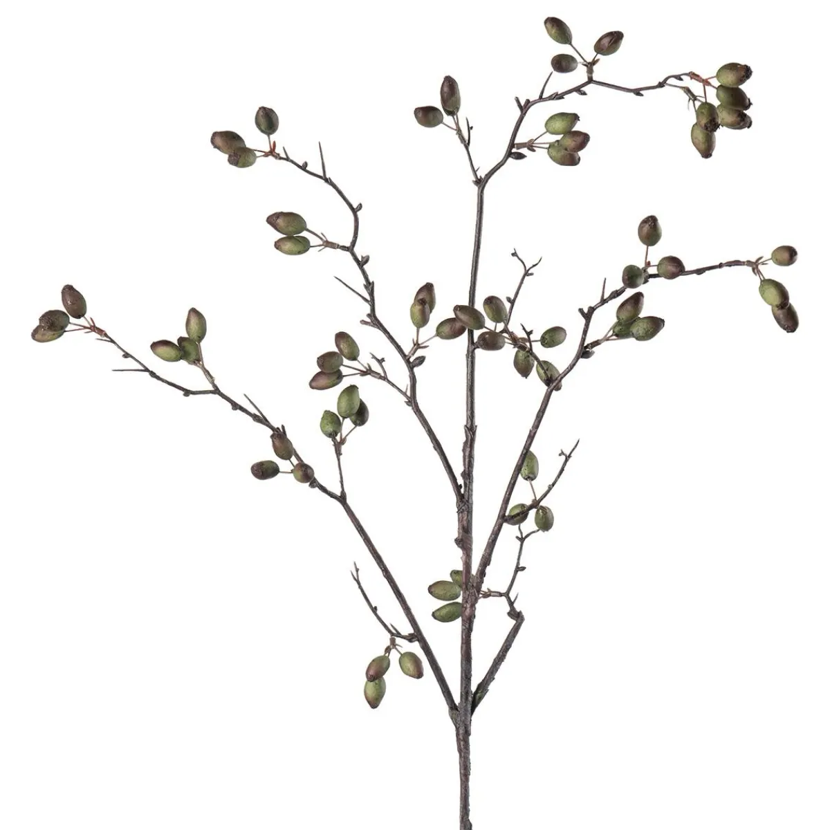 Små bær i dype høsttoner gir denne grenen et lunt og rolig uttrykk. Passer fint alene i en høy vase, men blir ekstra fin sammen med og andre stilker i jordfarger. Bøyes lett til ønsket lengde og krever verken vann eller dagslys.