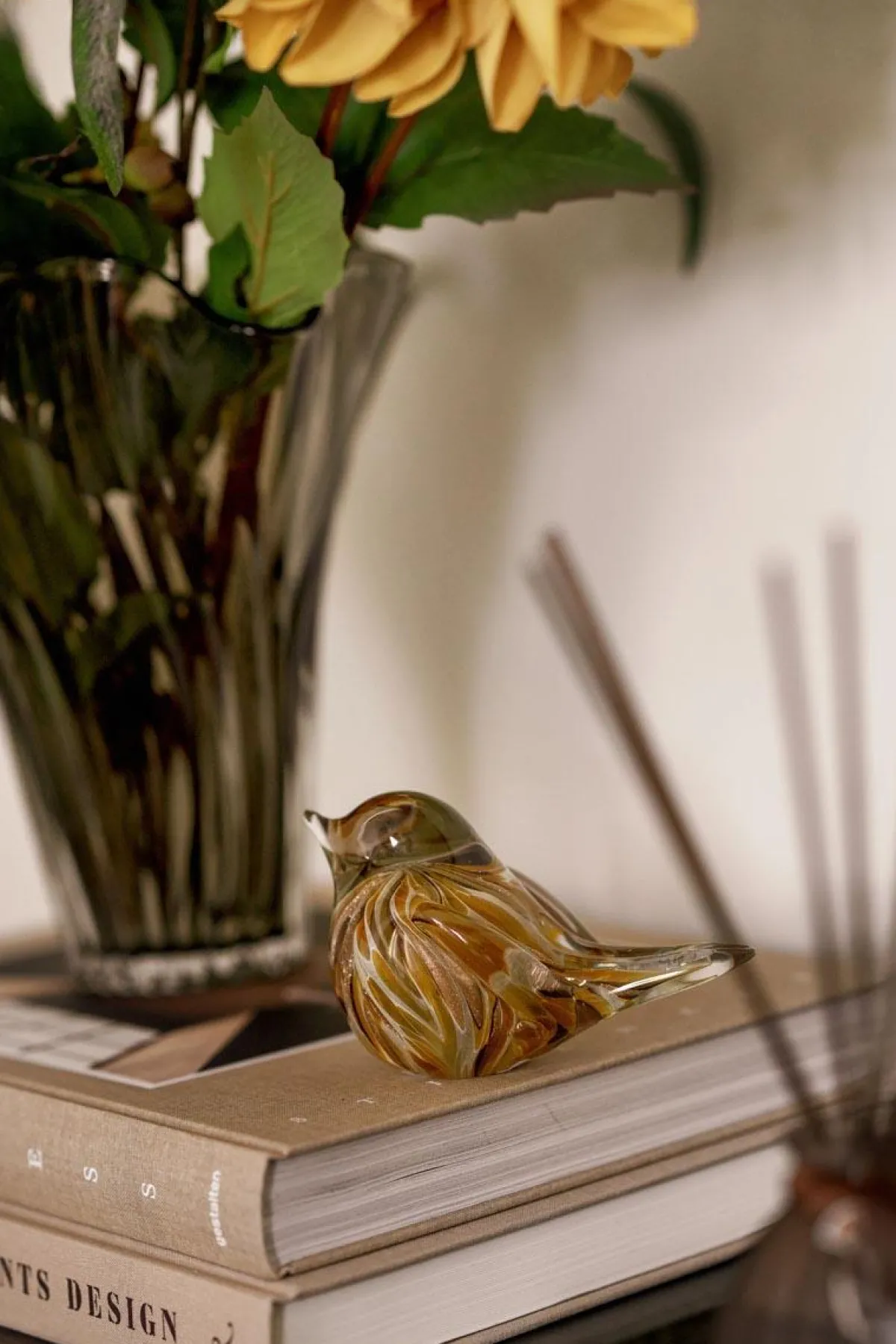 Denne lille glassfuglen trives godt på en , i en vinduskarm eller midt blant andre små dekorfavoritter. De varme, virvlende fargene gjør den ekstra lun og fin til høsten, men den passer like godt hele året.