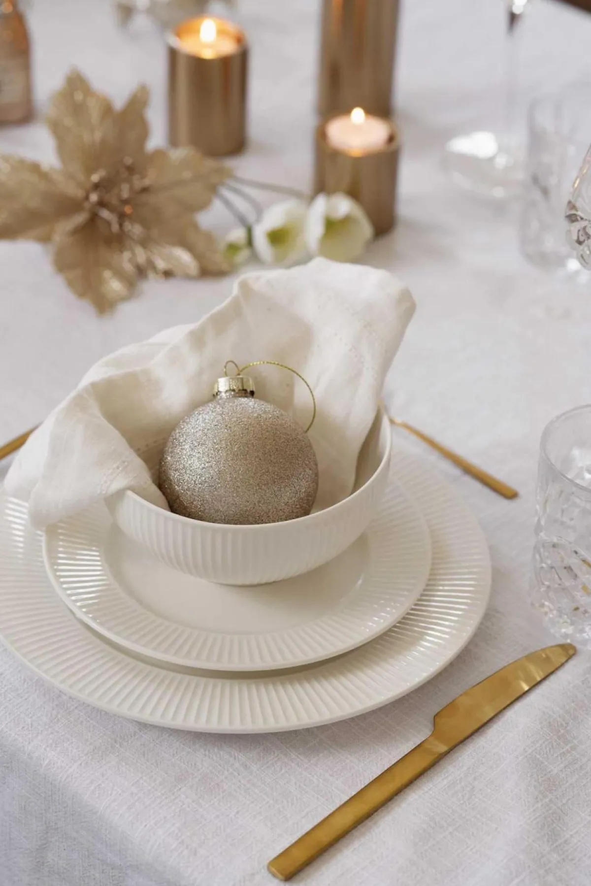 Pynt juletreet ditt med vår 4-pakning med glitrende julekuler i gull! Disse elegante julekulene tilfører en luksuriøs og festlig touch til din juledekorasjon.