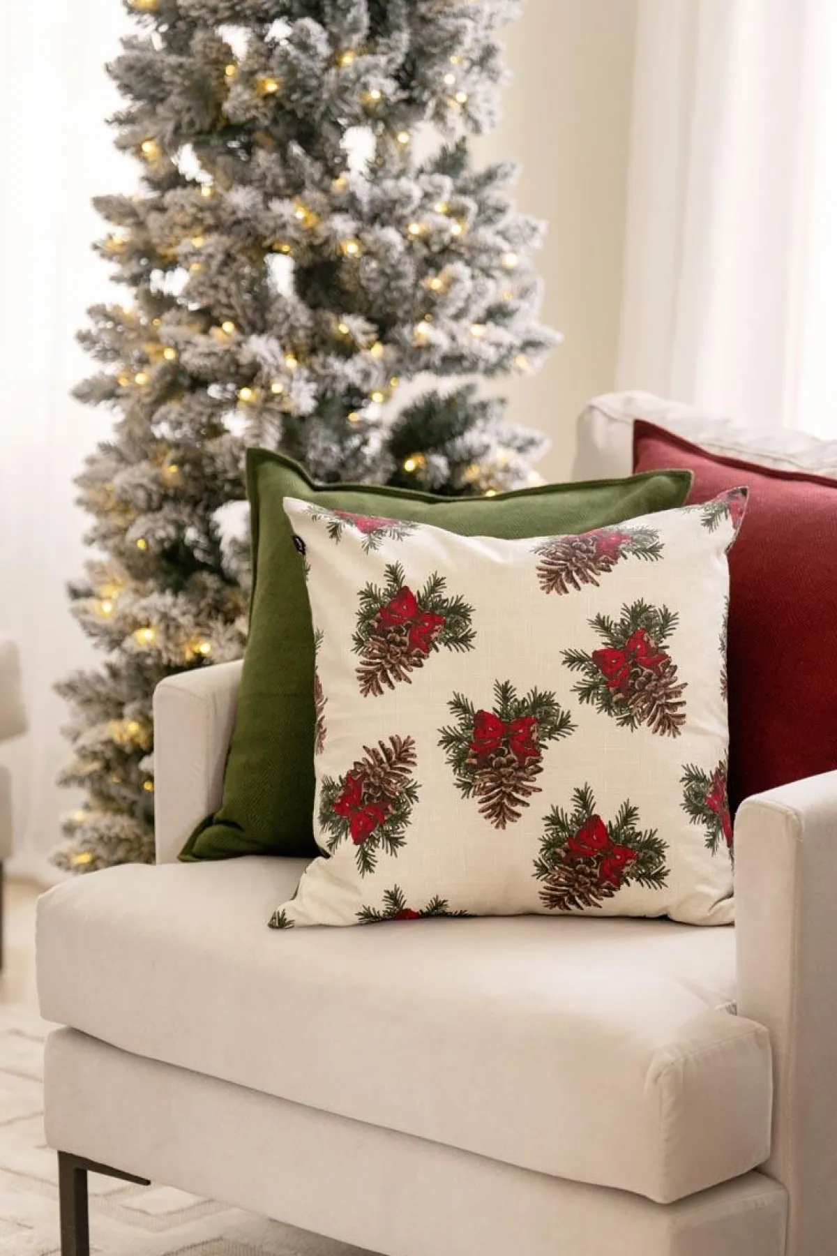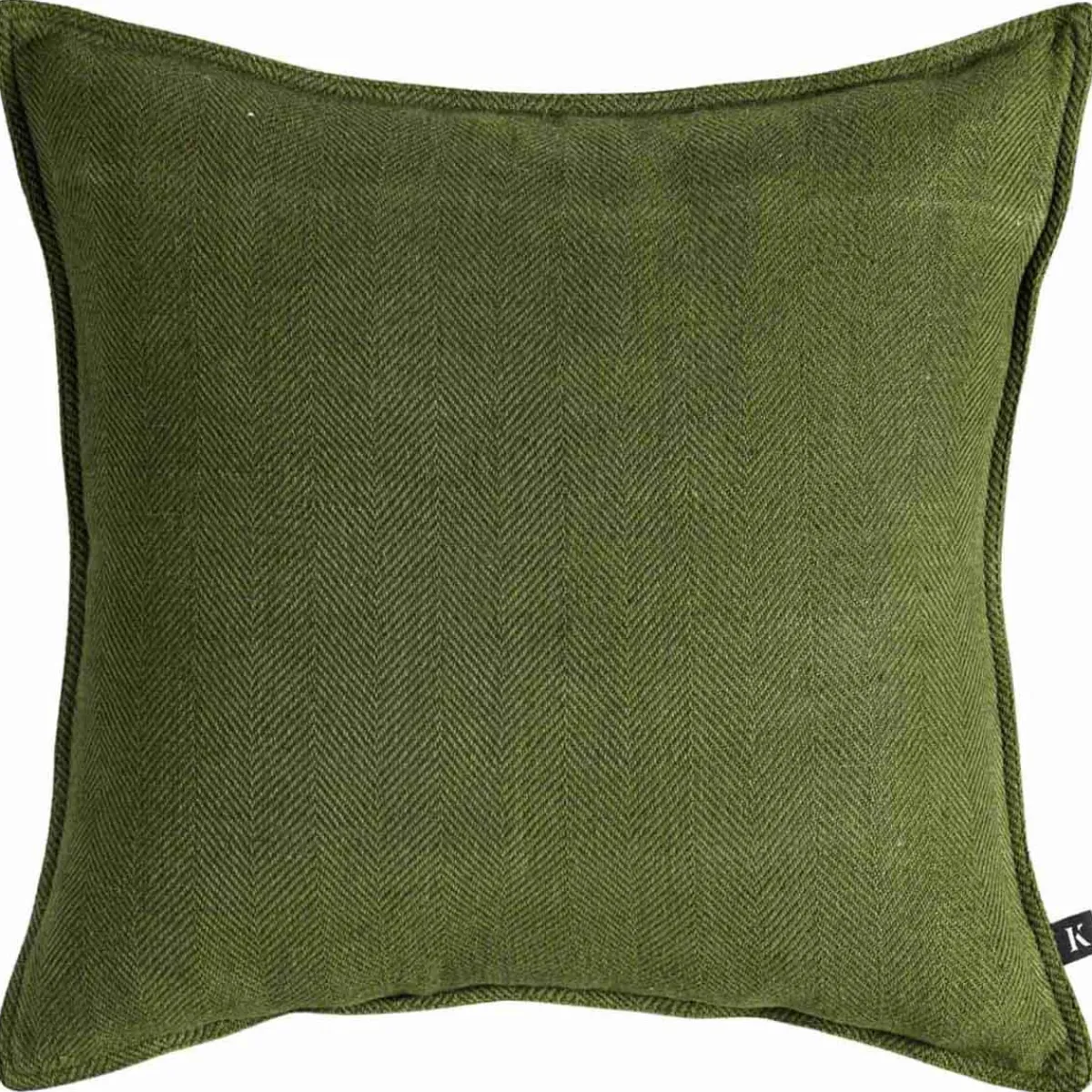 Putetrekket i dyp grønn farge har et diskret fiskebensmønster som gir et lunt og stilrent uttrykk. Passer fint alene eller sammen med tekstiler i jordfarger.