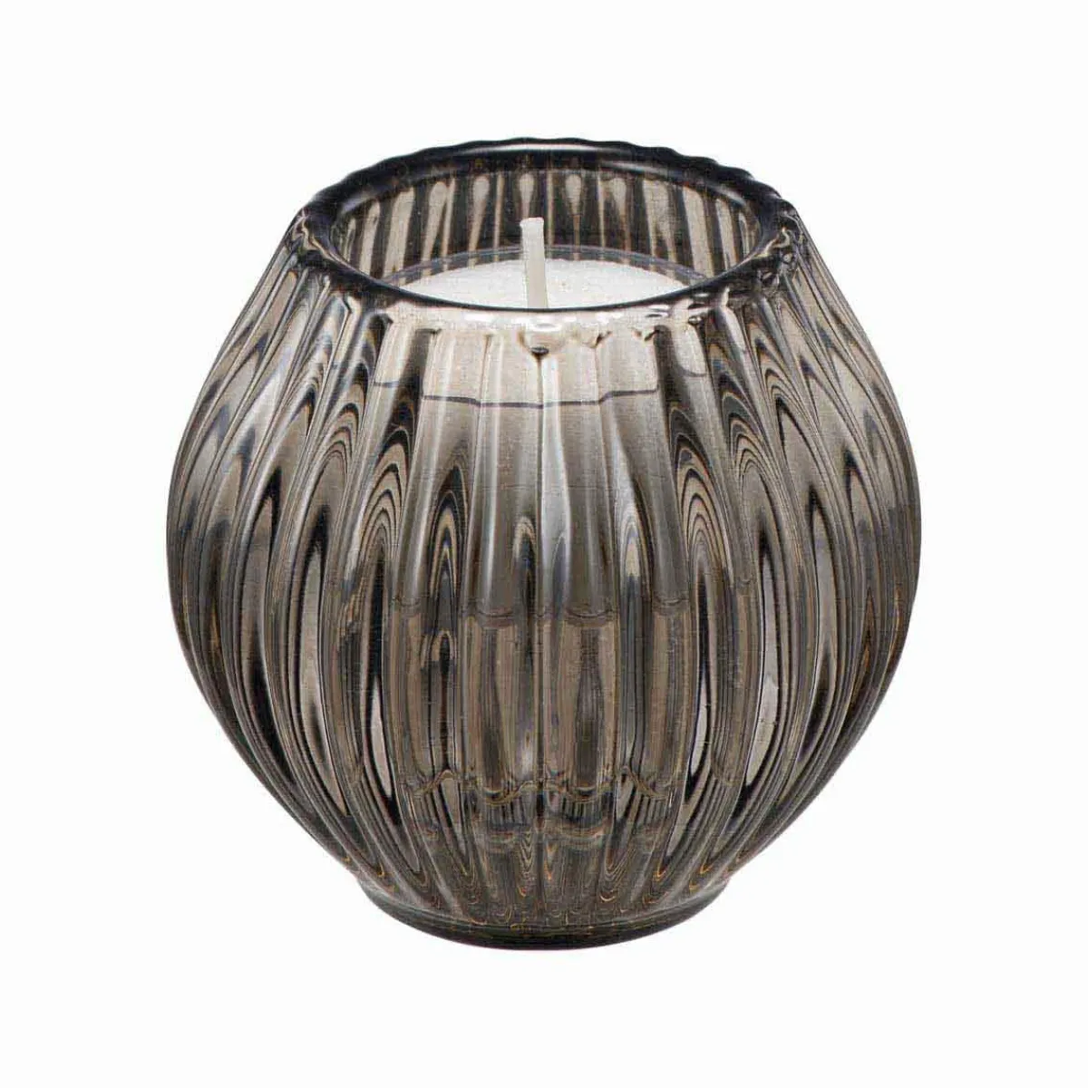 En liten lysholder med to triks i ermet. Den er perfekt til kronelys, men snur du den opp ned, passer den til telys også. Enkelt og litt smart. Den runde fasongen med riller gir et nydelig lysspill når lyset er tent – perfekt til både hverdag og fest. Kombiner gjerne med den klare varianten for en fin kontrast, eller miks med og små i samme fargetoner for et helhetlig uttrykk.
