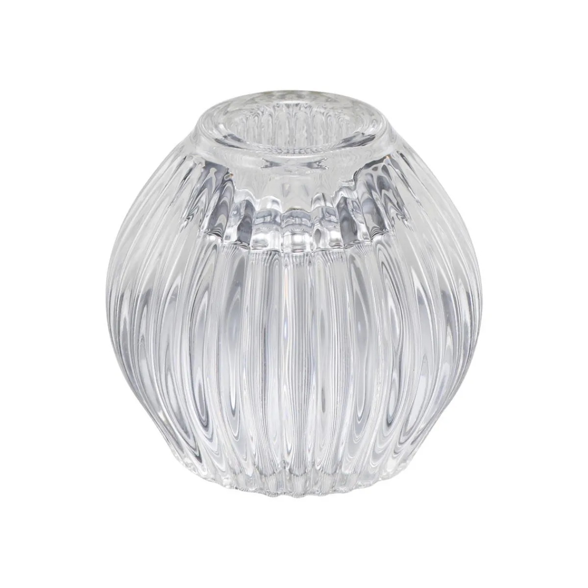 Denne kombi lysestaken gir deg to i én – telys i den ene enden, kronelys i den andre. Den buede formen og de rillede sidene gir et mykt spill i glasset, spesielt når lyset tennes. Glasset er klart og solid, og passer like fint alene som i en gruppe med flere. Bytt mellom telys og kronelys etter humør og anledning, eller miks ulike høyder for mer liv på bordet eller samle på et .