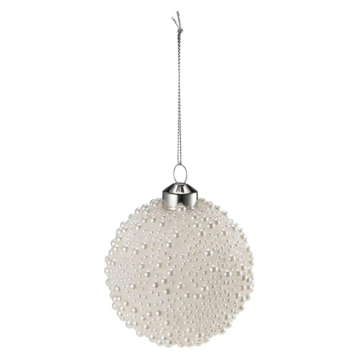 Gi juletreet ditt en elegant og tidløs touch med vår hvite julekule dekorert med perler i forskjellige størrelser! Perlene i varierende størrelser legger til tekstur og interesse, samtidig som de fanger lyset på en nydelig måte.