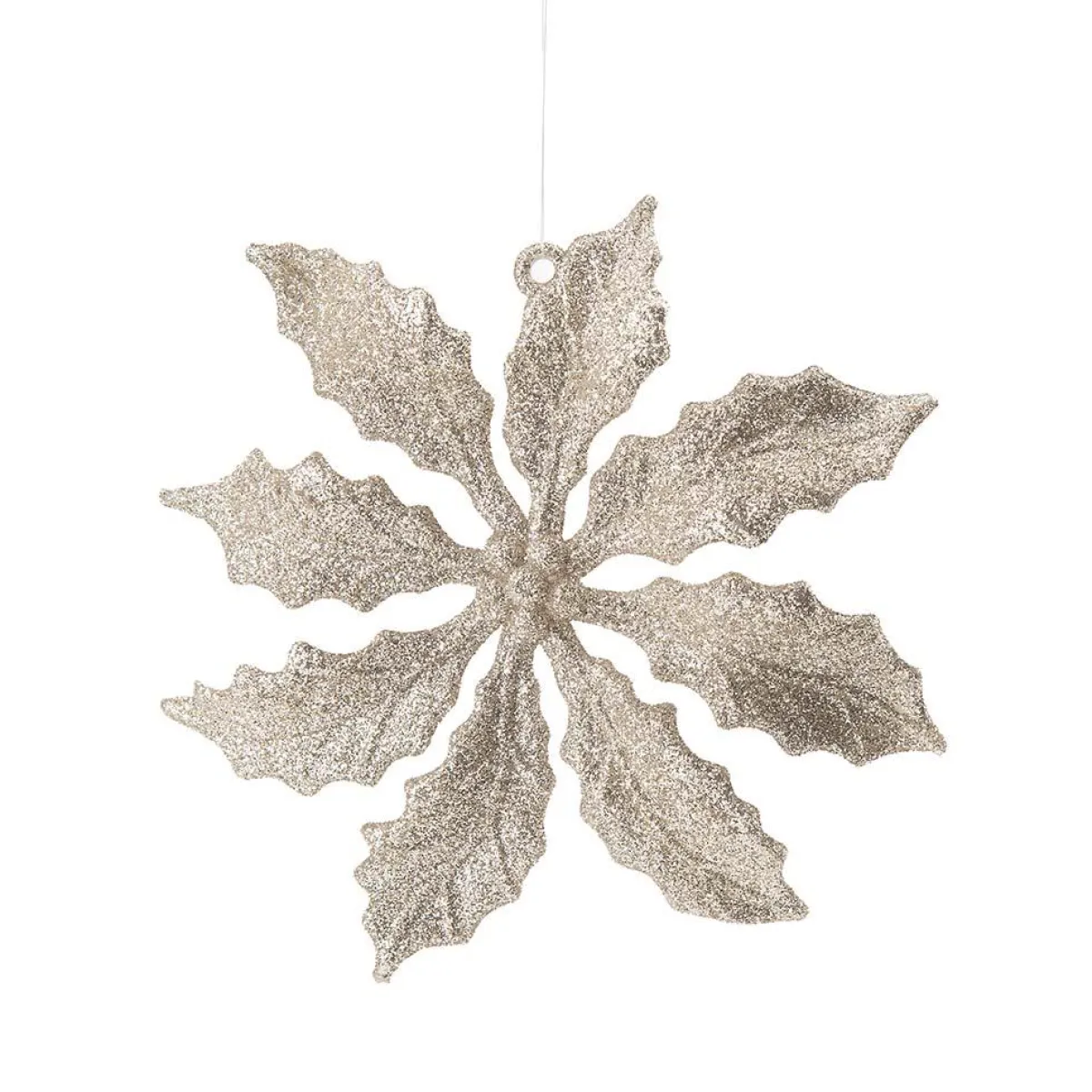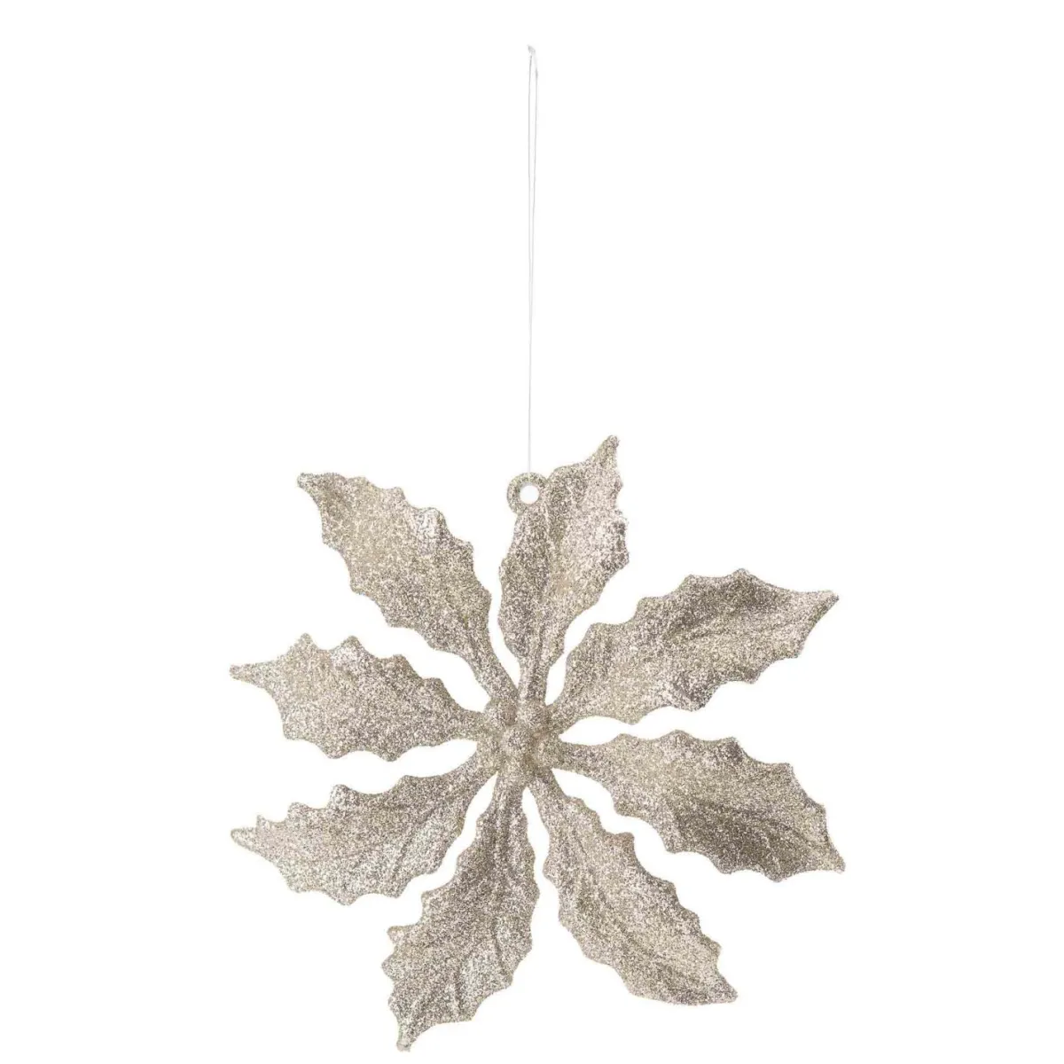 Pynt juletreet ditt med vår juletrepynt Flower! Denne vakre blomsten er dekket med skinnende gullglitter som fanger lyset og gir et glitrende, elegant utseende.