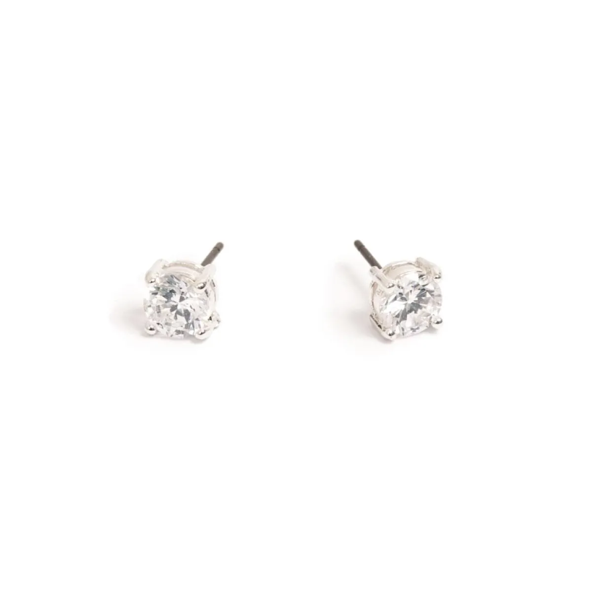 Et par ørepynt laget av enkle cubic zirconer, sølvbelagt.