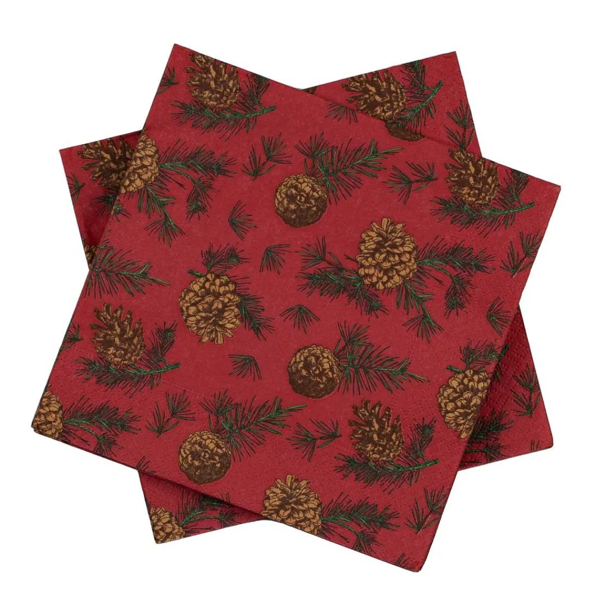 Nydelig julete serviett med koselig mønster av kongle på rød bakgrunn. 20stk i pakken.