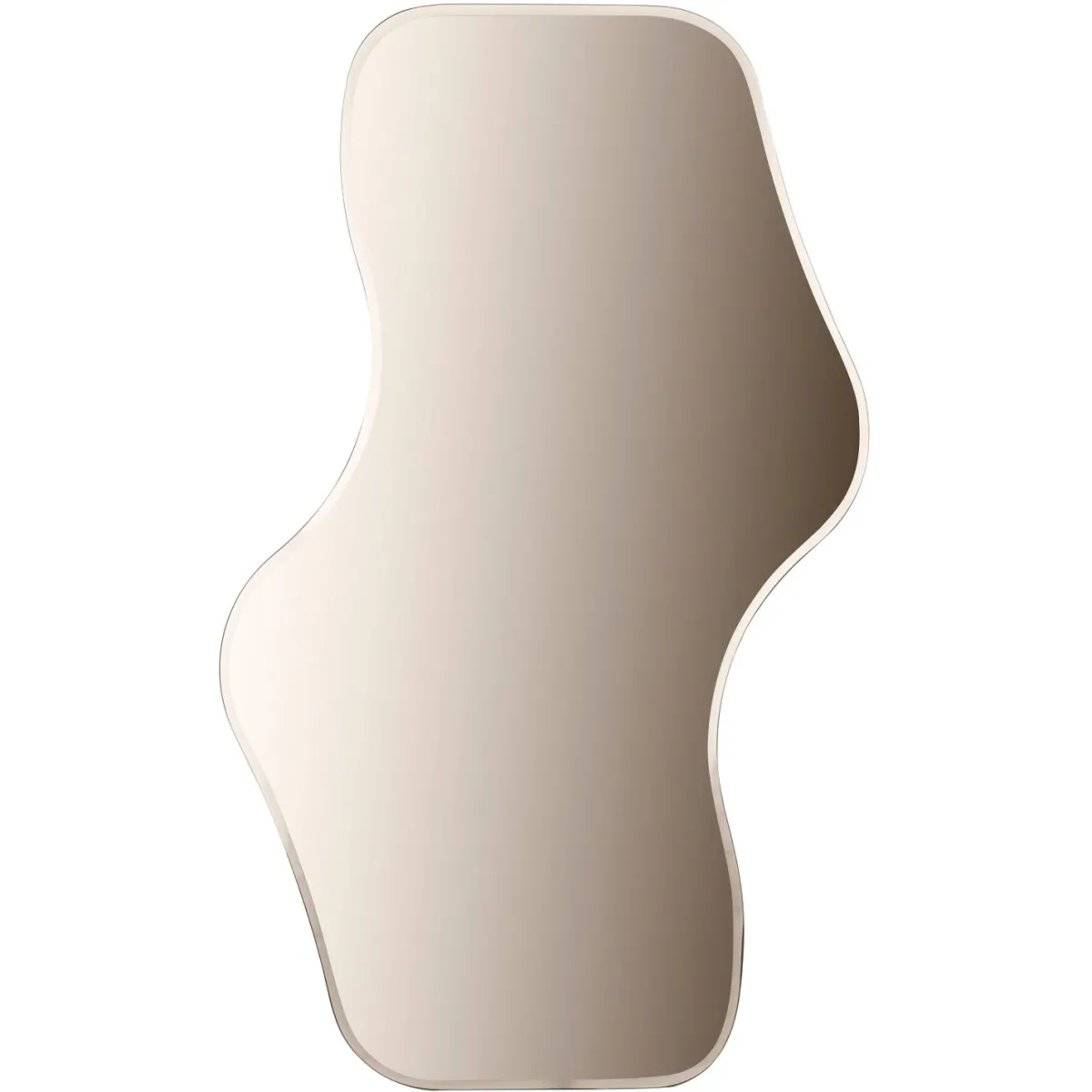Nydelig speil med bronzefarget glass, organisk og trendy form. Dette er det perfekt blikkfanget enten i stuen eller i gangen.