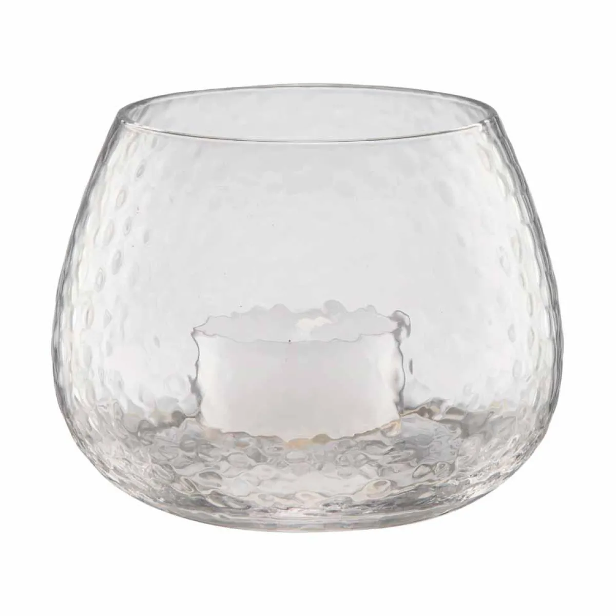Nydelig telysglass i blankt banket glass som leker med lyset fra telyset. Pynt opp på lysfatet eller på stuebordet.