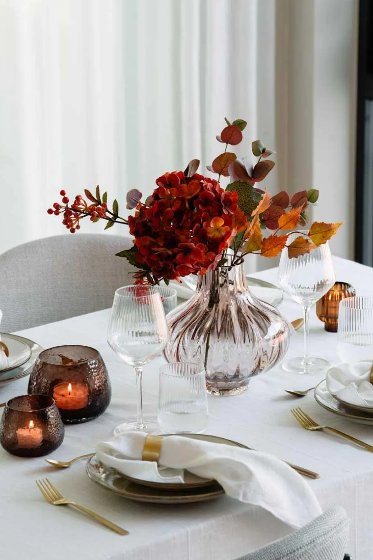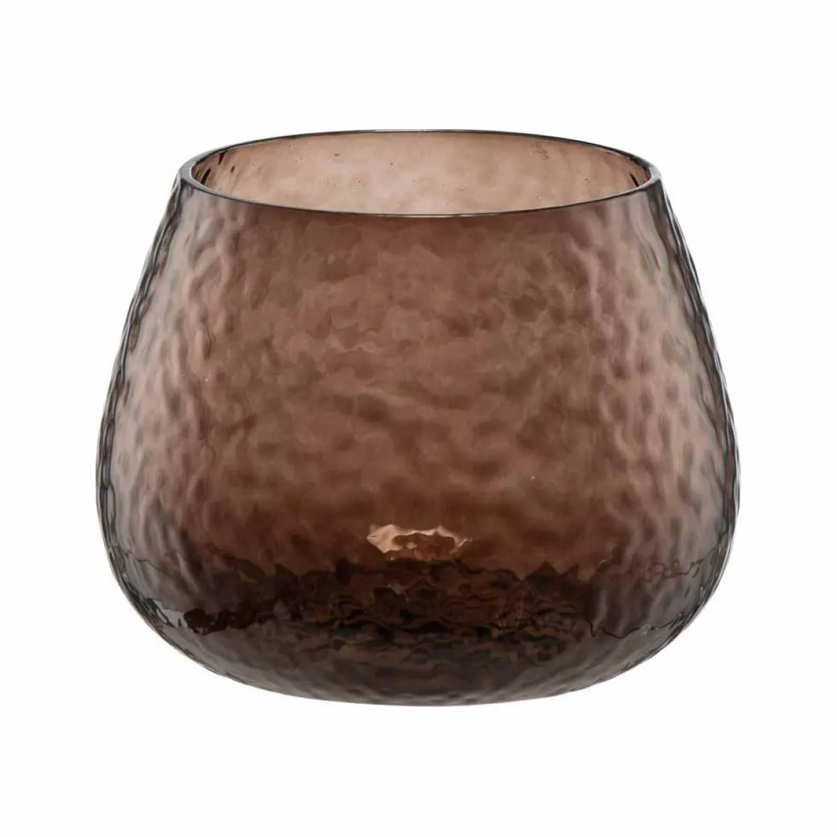 Nydelig telysglass i brunfarget banket glass som leker med lyset fra telyset. Pynt opp på lysfatet eller på stuebordet. Telysholderen fås i flere farger og størrelser, se hele .
