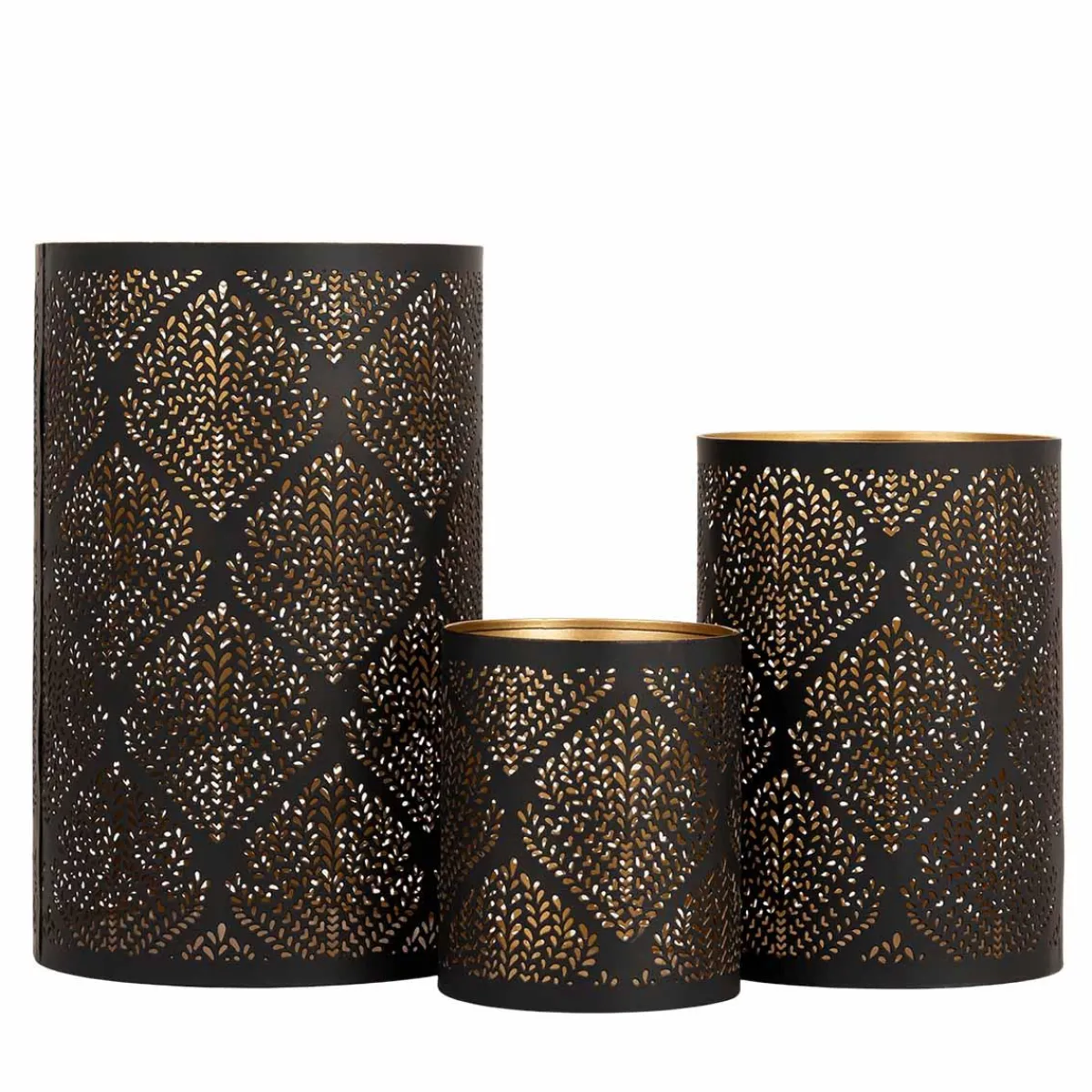Lyslyktene Grace skaper en varm og lun stemning med sitt detaljerte mønster og gyldne innside. Settet består av tre lykter i ulike størrelser og leveres i en dekorativ gaveeske – perfekt som vertinnegave eller liten oppmerksomhet.