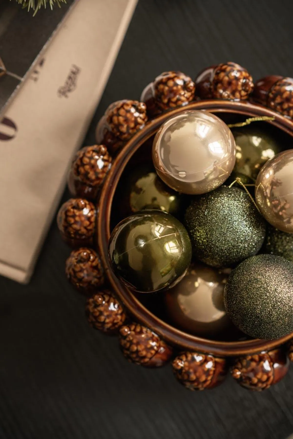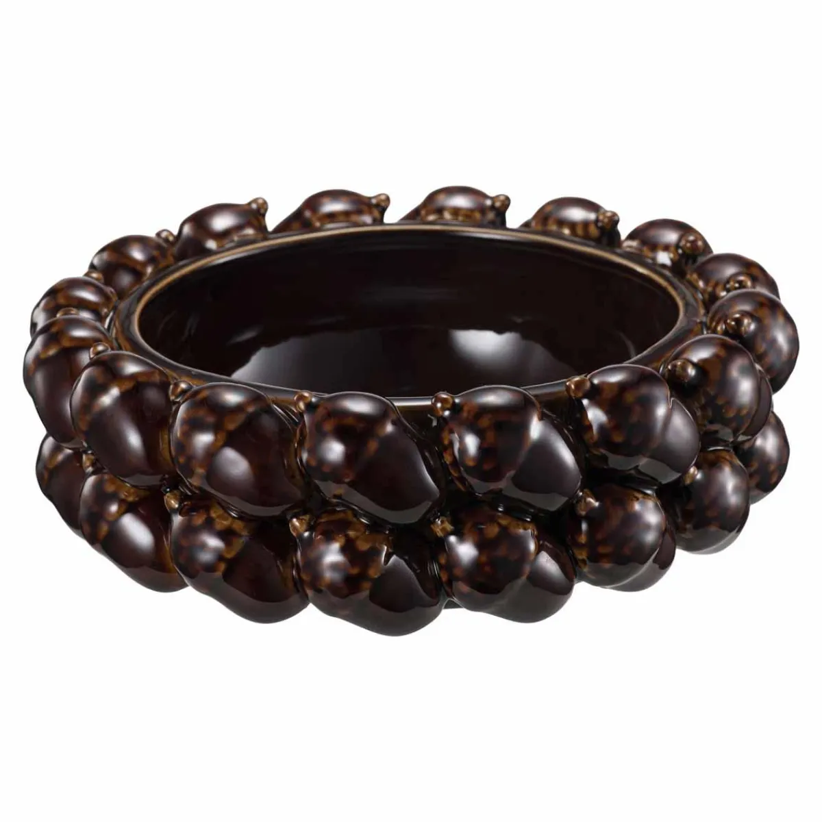 Dekorfat med unikt design og blank overflate i dype bruntoner. Perfekt til å samle lys, dekorasjoner eller småting på bordet. Skaper et lunt og stilfullt uttrykk i rommet.