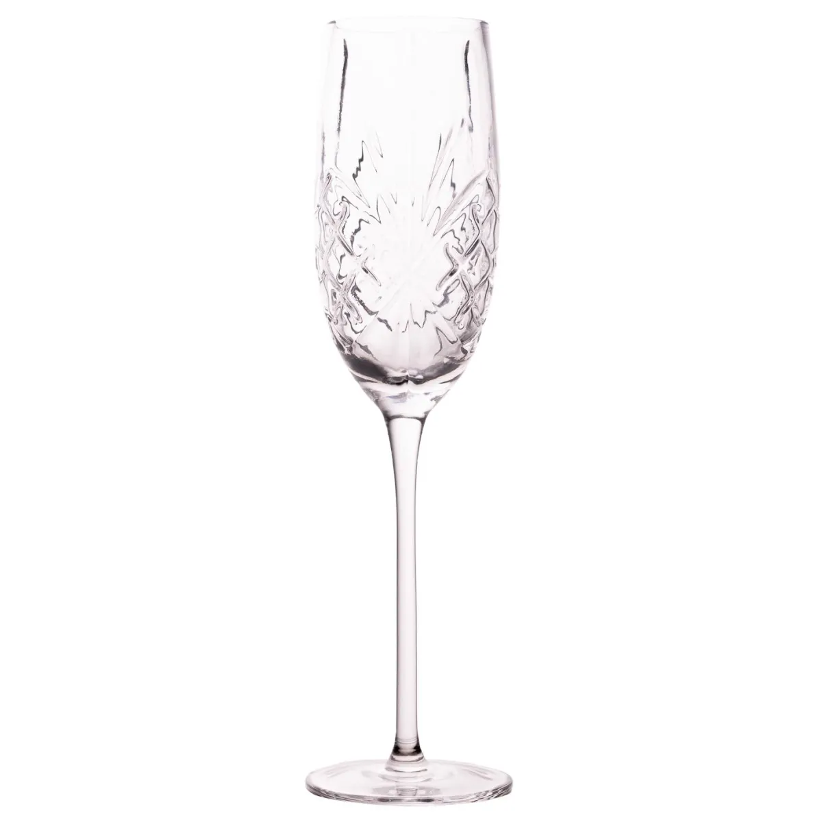 Dette er et dekorativt hvitvinsglass som like godt kan brukes både til hvitvin som til sprudlende. Mønsteret gjør at glasset får et tidløst preg over seg og passer inn i ethvert hjem. Se hele utvalget vårt i .