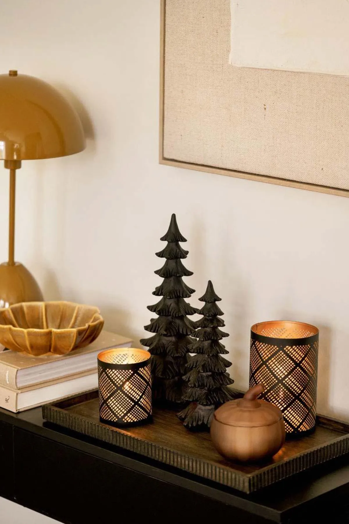 Et lysfat med riller hele veien rundt og god plass til både og små . Den mørke trefargen gir en lun følelse og passer inn i mange stiler. Også fin som base for sesongdekor – bytt bare ut det som står oppå, så har du et nytt uttrykk på et blunk.
