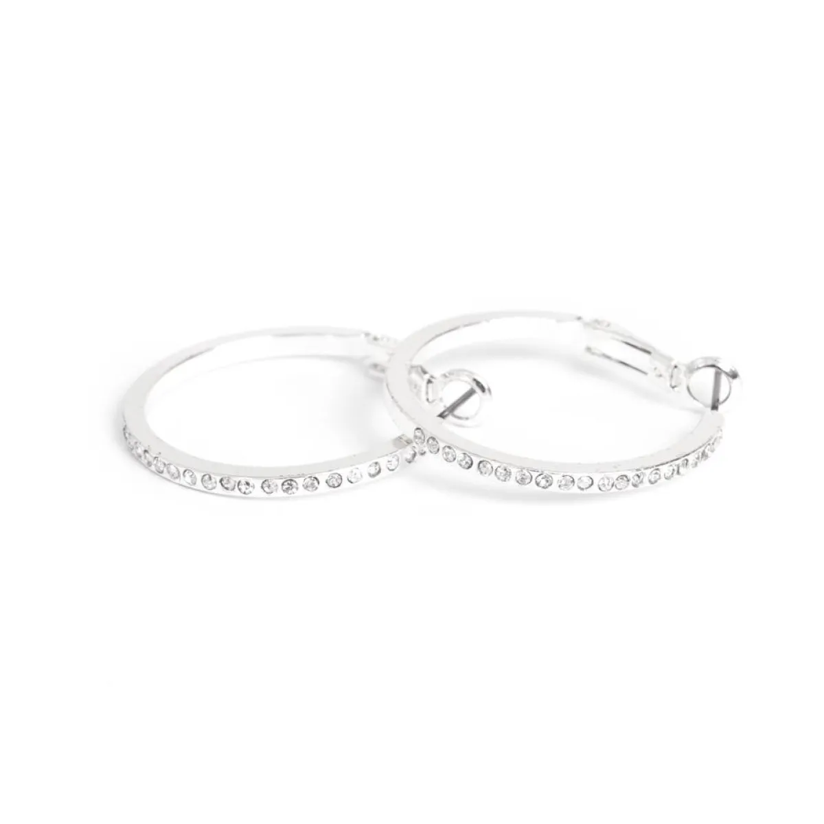 Enkle øreringer i en blank sølvfarget firkantprofil med krystallsteiner og en god klypelås som er lett å ta av og på. Kommer i flere størrelser.