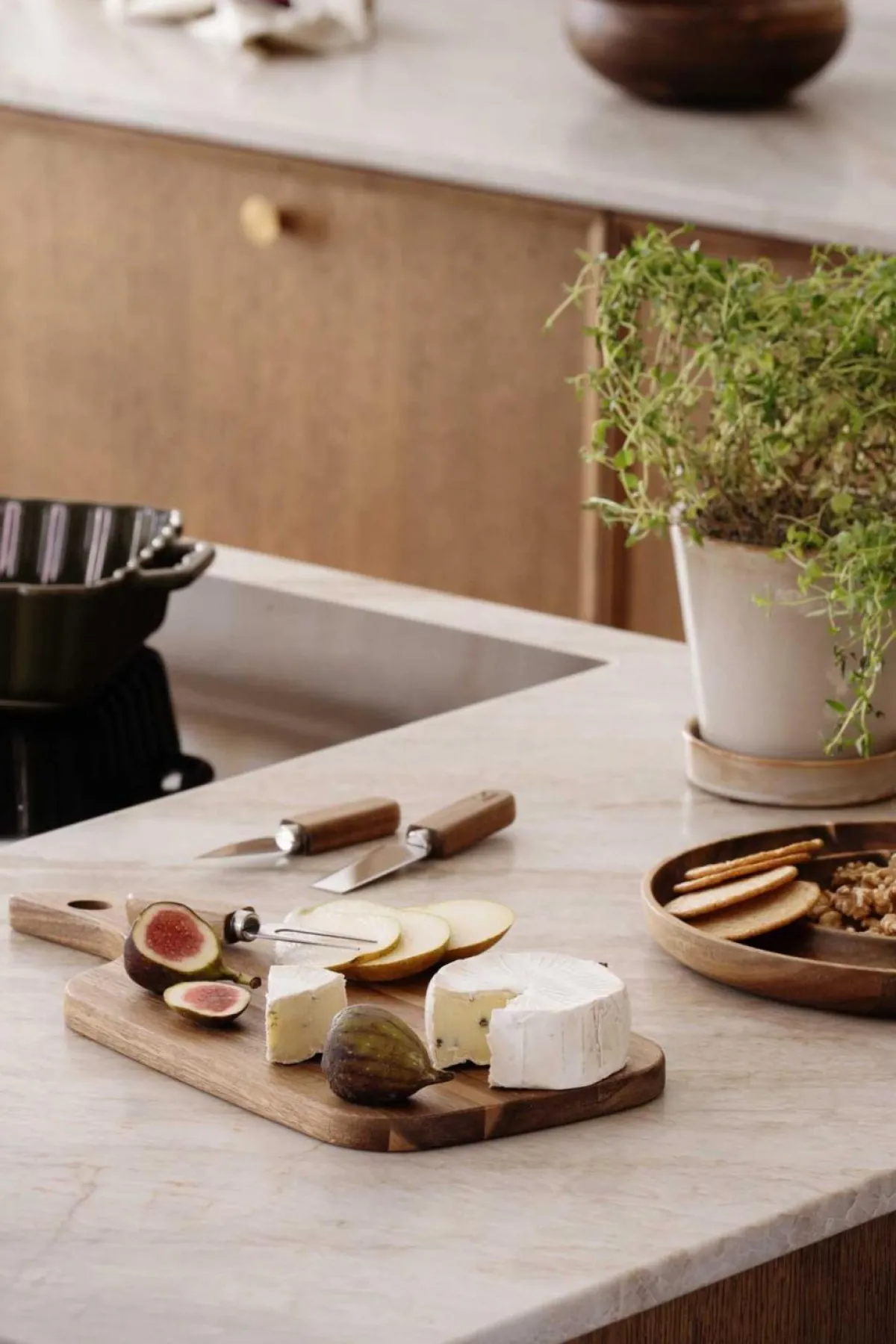 Dette settet består av tre ulike ostekniver, hver med et trehåndtak som gir et godt grep og et stilrent utseende. Settet inneholder en kniv for harde oster, en spatel for mykere oster, og en gaffel for servering. Perfekt til å komplettere ostefatet til sammenkomster, middager eller små hverdagsgleder. Vi anbefaler å rengjøre for hånd for å bevare trehåndtakets kvalitet. Ideell som gave til en osteelsker eller for å gi ditt eget kjøkkenutstyr et løft.