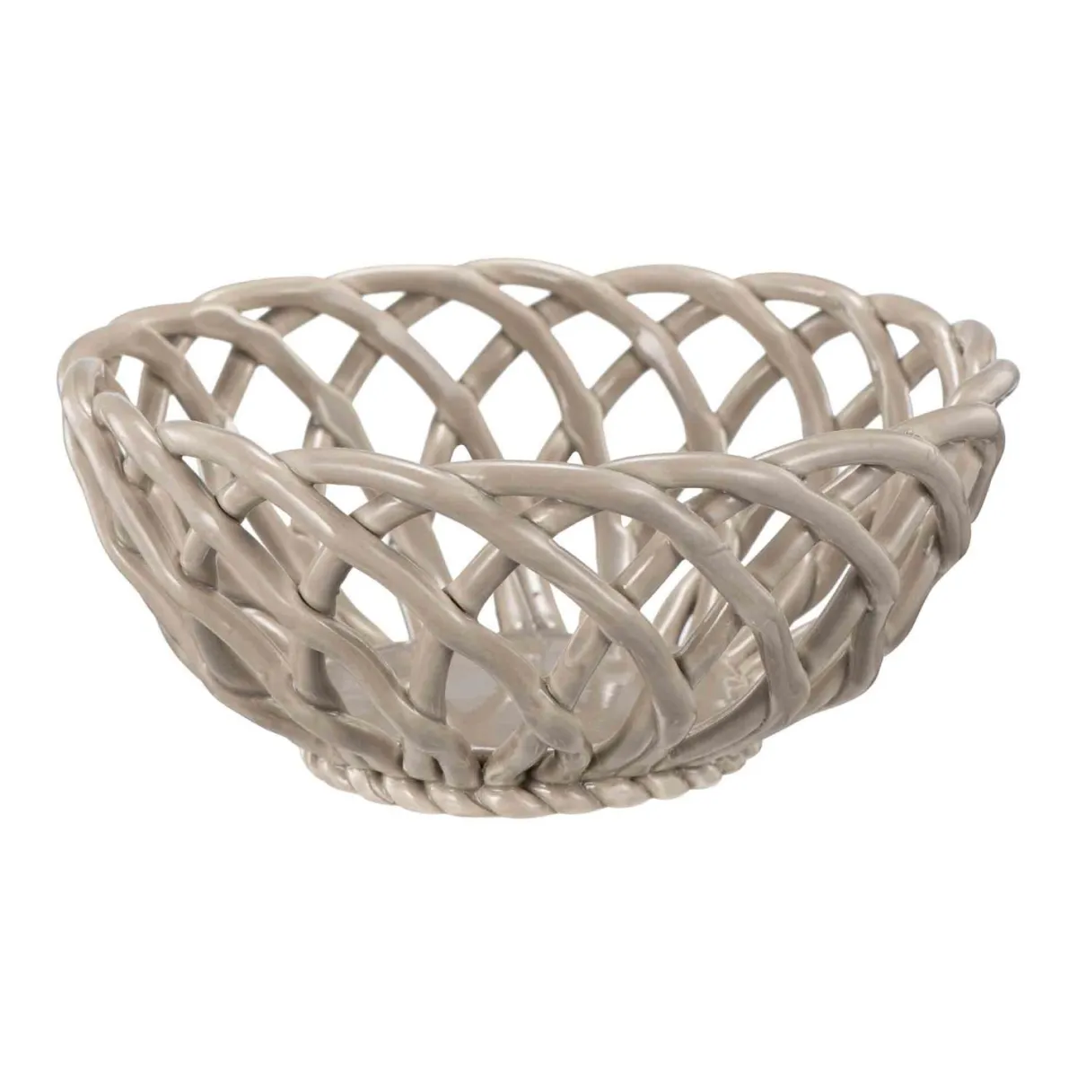 En dekorativ kurv i keramikk som skaper en fin balanse mellom funksjon og design. Perfekt til frukt eller som et blikkfang på bordet. Den flettede utformingen gir et åpent og luftig preg som lar innholdet stå fremme på en elegant måte.