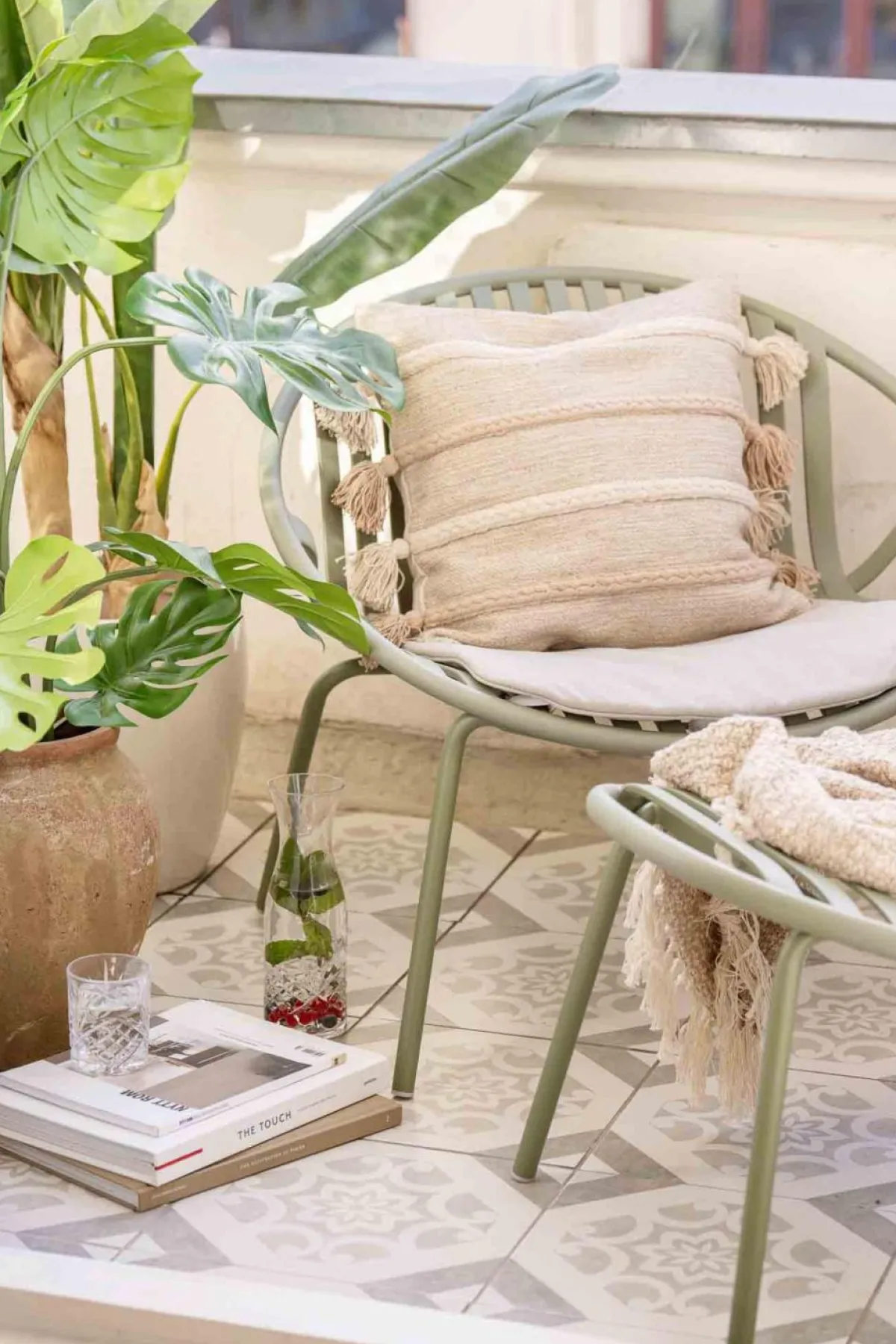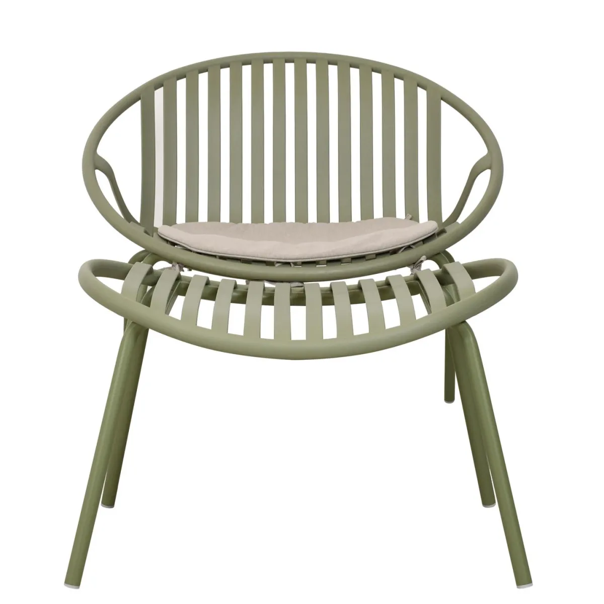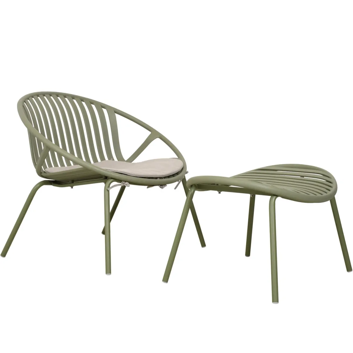 Ser du ute etter en trendy og komfortabel stol til uteplassen? Sjekk ut denne fine utestolen i dus grønn. Denne hagestolen har et rundt design som gjør den lekker å se på og sitte i. Den kommer med en stol pute og fotskammel, så her kan du virkelig strekke deg ut. Den kommer også i en herlig !