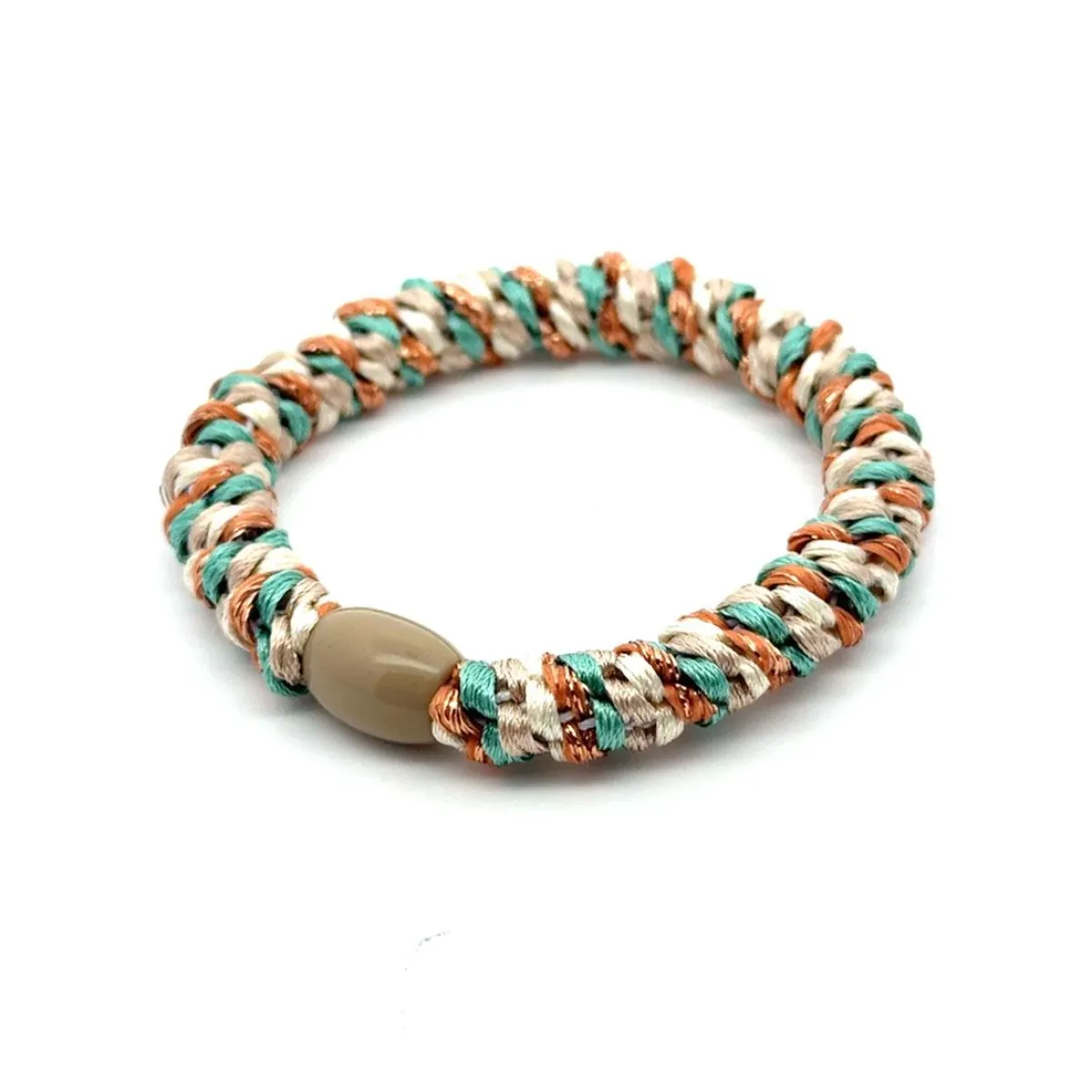 Flott hårstrikk med gull, mint og fersken tvinnet mønster. Hårstrikkene fra A&C er i god kvalitet som varer lenge. .
